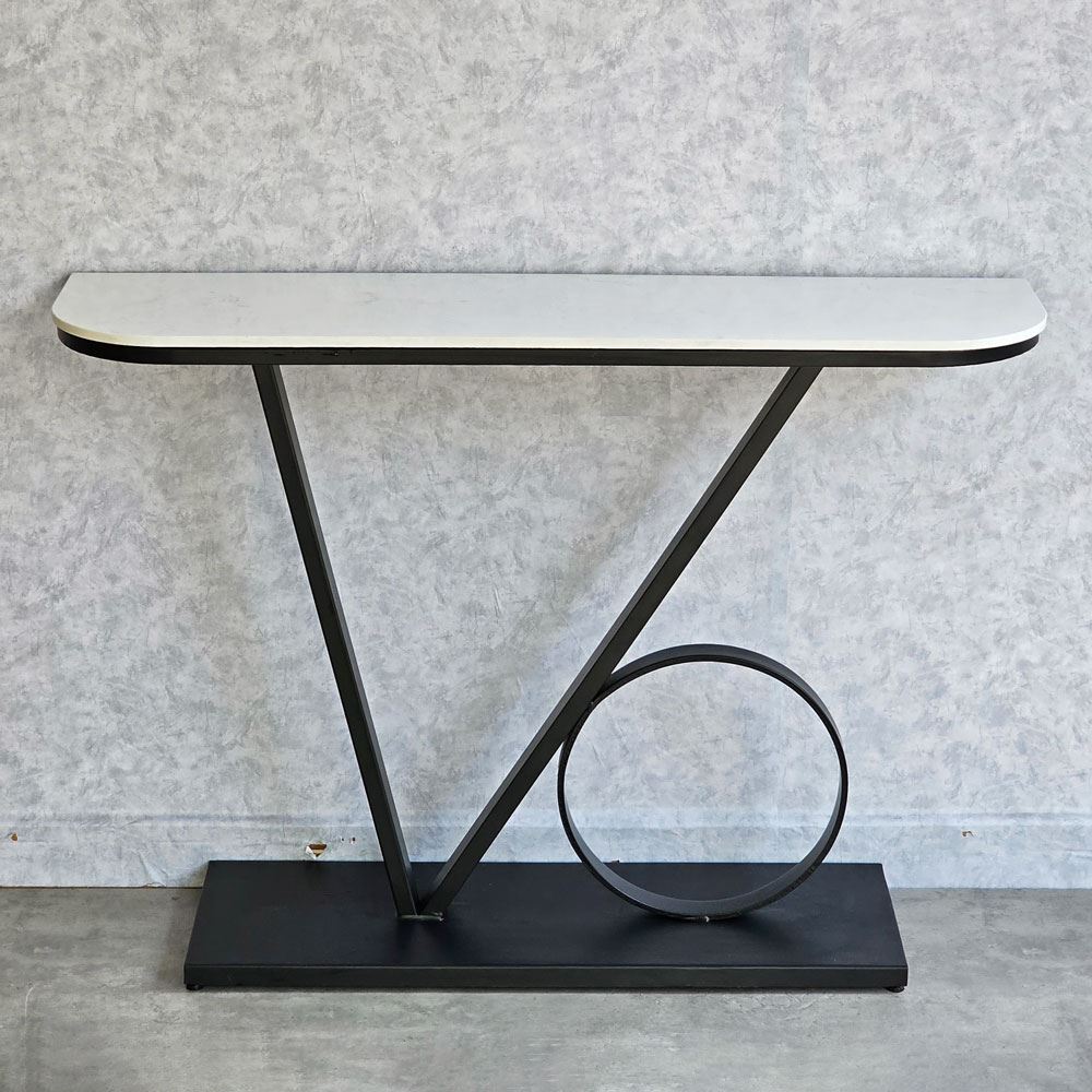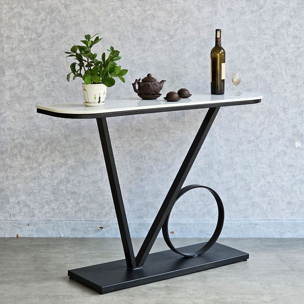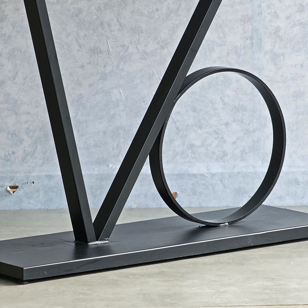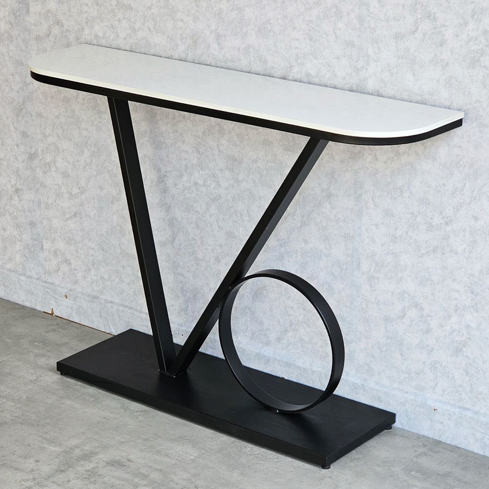 Bàn trang trí VO mặt đá chân sắt CST032 thiết kế hiện đại với đế chân là mâm sắt chắc chắn và cứng cáp, cách điệu chữ V và chữ O đẹp mắt, mặt bàn đá đỡ bởi khung sắt hình dáng bầu dục ôm sát tường rất mềm mại. Mẫn bàn trang trí VO rất phù hợp với các không gian sảnh, lối đi làm chiếc bàn trưng bày, trang trí.