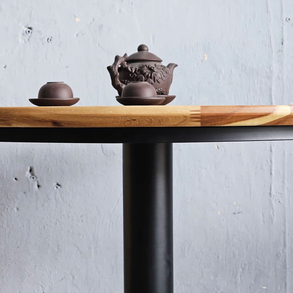 Bàn tròn 100cm gỗ tràm chân sắt BA68223