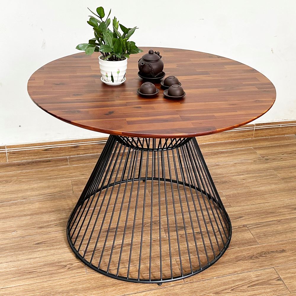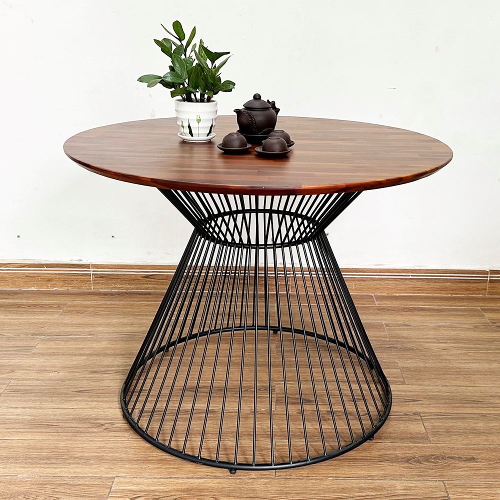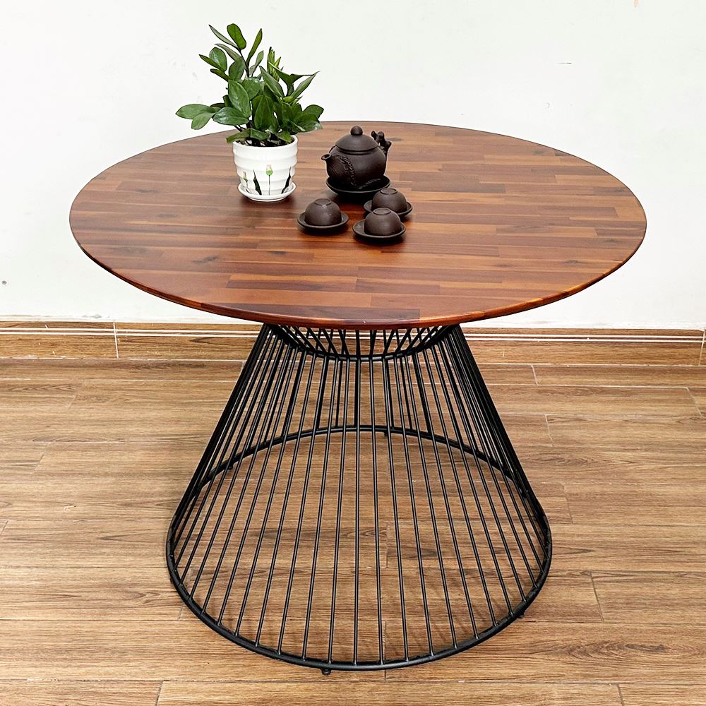 Bàn tròn gỗ Tràm chân sắt cổ lọ BA68148 với thiết kế chân sắt cổ lọ đẹp mắt kết hợp mặt bàn gỗ Tràm mang đến sản phẩm tinh tế phù hợp với nhiều không gian khác nhau từ bàn ăn nhỏ gọn hay bàn decor, bàn cafe đều phù hợp. Mặt bàn gỗ tràm 25mm tiêu chuẩn AA được xử lý PU hoàn thiện cho bề mặt sản phẩm rất đẹp mắt, chống nước tuyệt đối rất dễ dàng vệ sinh.