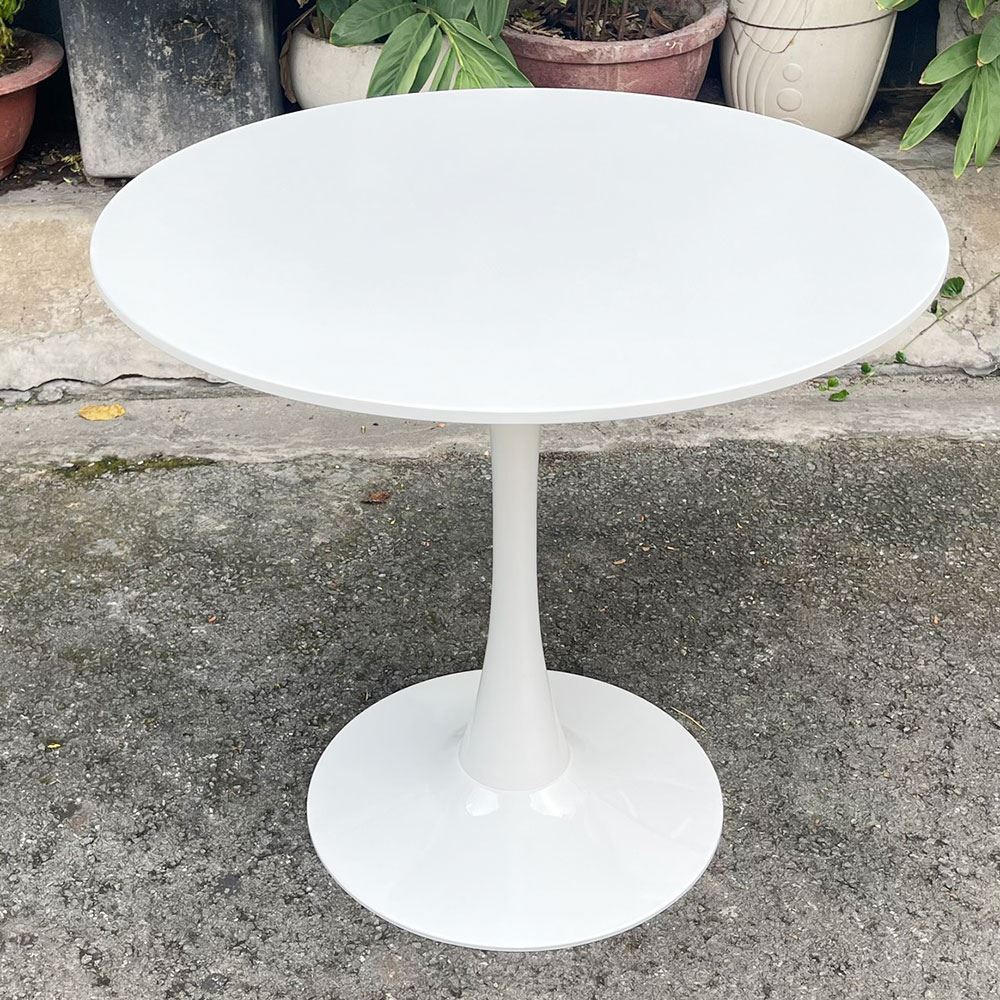Bàn Tulip tròn 80cm - ST15458 với thiết kế chân rất đẹp mắt bằng sắt sơn tĩnh điện được gia công rất tỷ mỉ sơn tiêu chuẩn suất khẩu, mặt bàn gỗ MDF sơn trắng mịn cực đẹp, khung chân vững chãi lắp ráp dễ dàng. Bàn rất phù hợp làm bàn ăn tròn trong gia đinh, quán cafe, nhà hàng. Bàn có màu đen và trắng, hoặc có thể thay bằng các loại mặt bàn gỗ cao su.