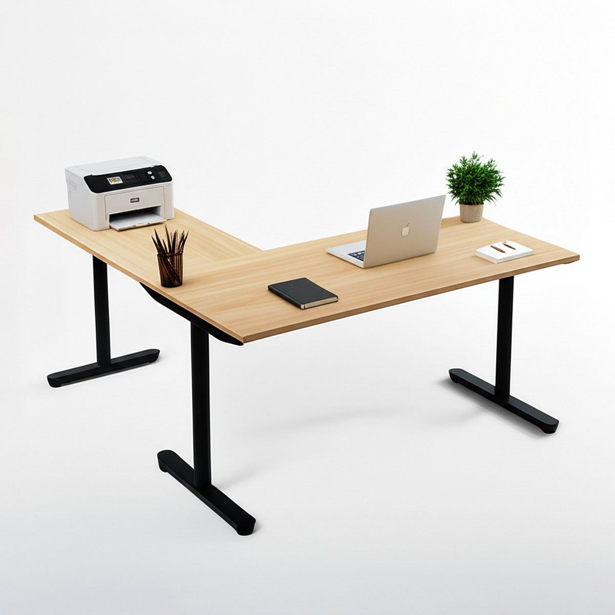Bàn văn phòng góc L hệ TIO 3 chân - HBTO005 thiết kế góc L rất phù hợp với các không gian góc nhà và diện tích bàn sử dụng sẽ lớn hơn, cảm giác bao quát mặt bàn tốt hơn. Bên cạnh kích thước công bố quý khách hàng có thể đặt kích thước theo yêu cầu. Chân sắt hệ TIO lắp ráp 3 chân sơn tĩnh điện với hệ khung giằng rất chắc chắn. Mặt bàn gỗ cao su hoặc gỗ Plywood siêu bền, tải trọng bàn lên đến 100kg nên có thể an tâm sử dụng với các thiết bị nặng trên bàn. Góc L có thể đổi sang bên trái hoặc bên phải tuỳ nhu cầu sử dụng.