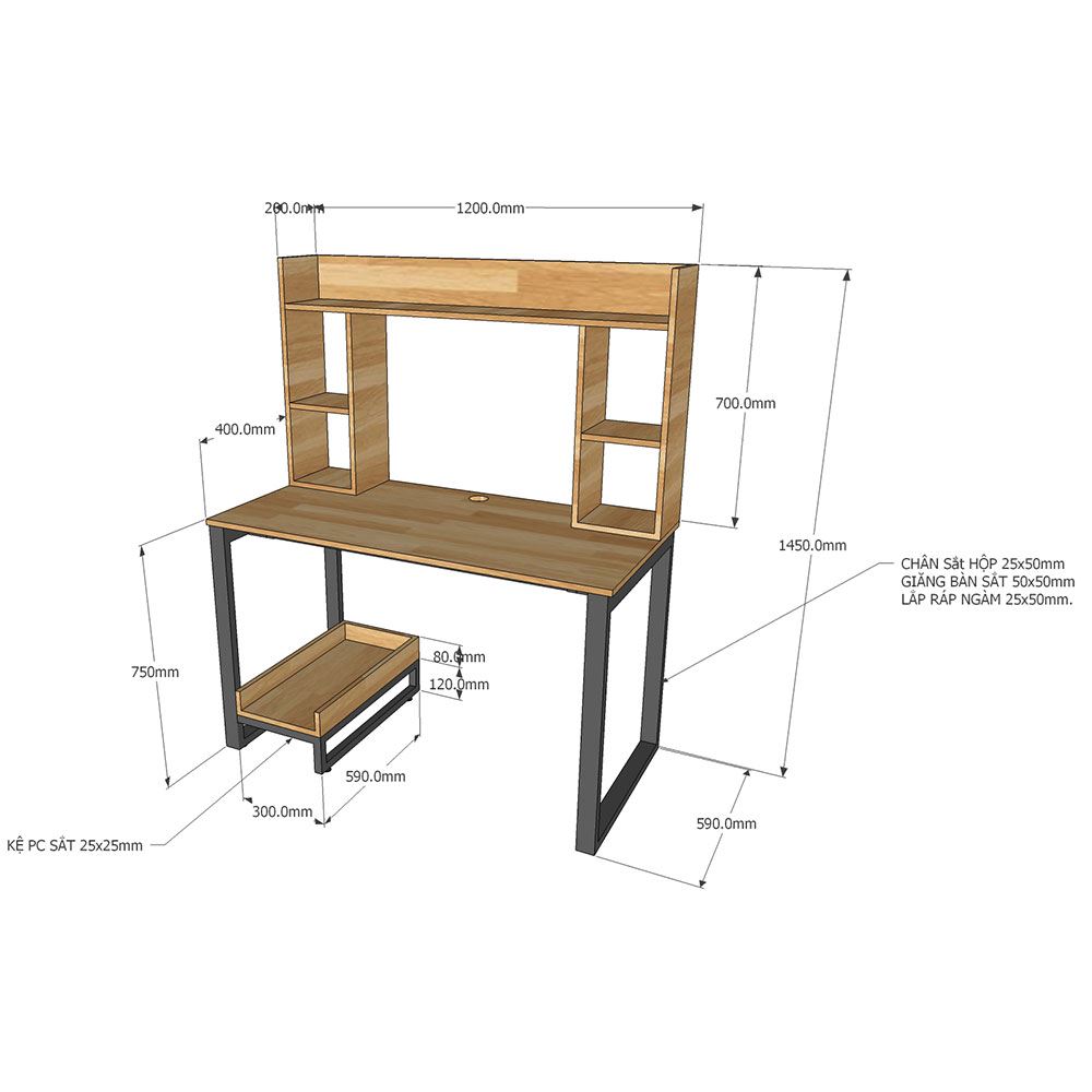 Kệ sách có nhiều tầng, kích thước đa dạng, phù hợp với nhiều loại sách và vật dụng khác nhau. Thiết kế thông minh này giúp bạn tận dụng tối đa diện tích, đặc biệt phù hợp với những căn phòng nhỏ. Kích thước mặt bàn rộng rãi, đủ không gian cho máy tính, màn hình, chuột, bàn phím và các vật dụng khác.