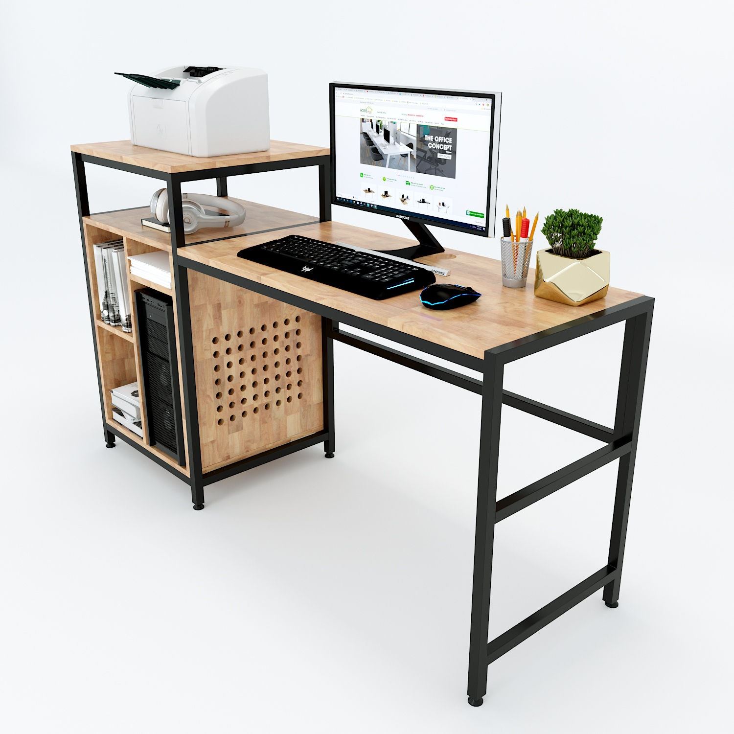 COD68035 - Bàn Vi tính gỗ cao su khung sắt kết hợp kệ (137x50x92cm) với chất liệu mặt bàn và kệ gỗ cao su tiêu chuẩn AA dày 17mm sơn PU hoàn thiện với nhiều màu sắc lựa chọn, hệ khung chân sắt hộp sơn tĩnh điện chất lượng cao, lắp ráp. Mẫu bàn kết hợp gồm 1 bàn và 1 kệ rời để CPU và máy in, kích thước bề mặt bàn rộng 50cm phù hợp với nhiều không gian và mục đích sử dụng