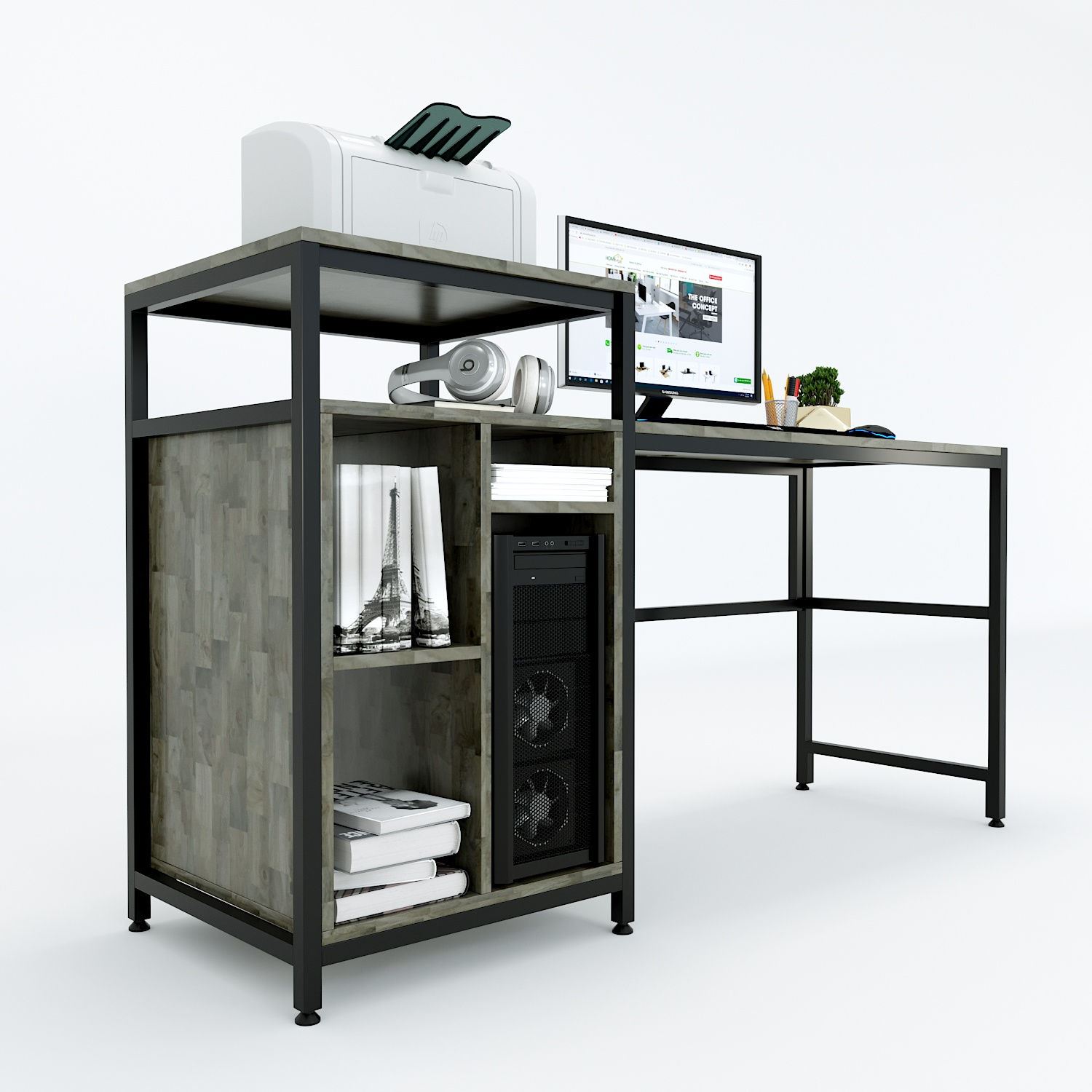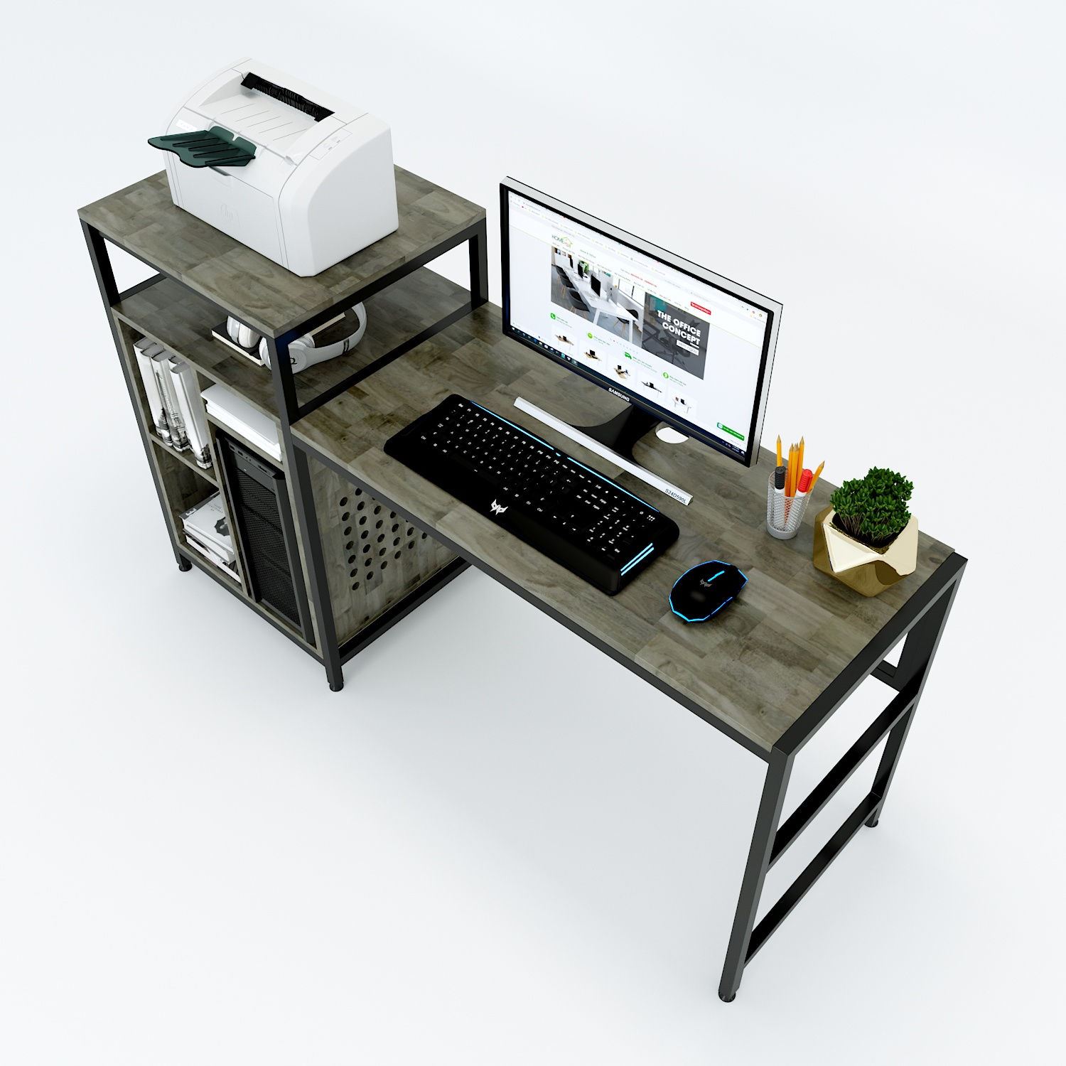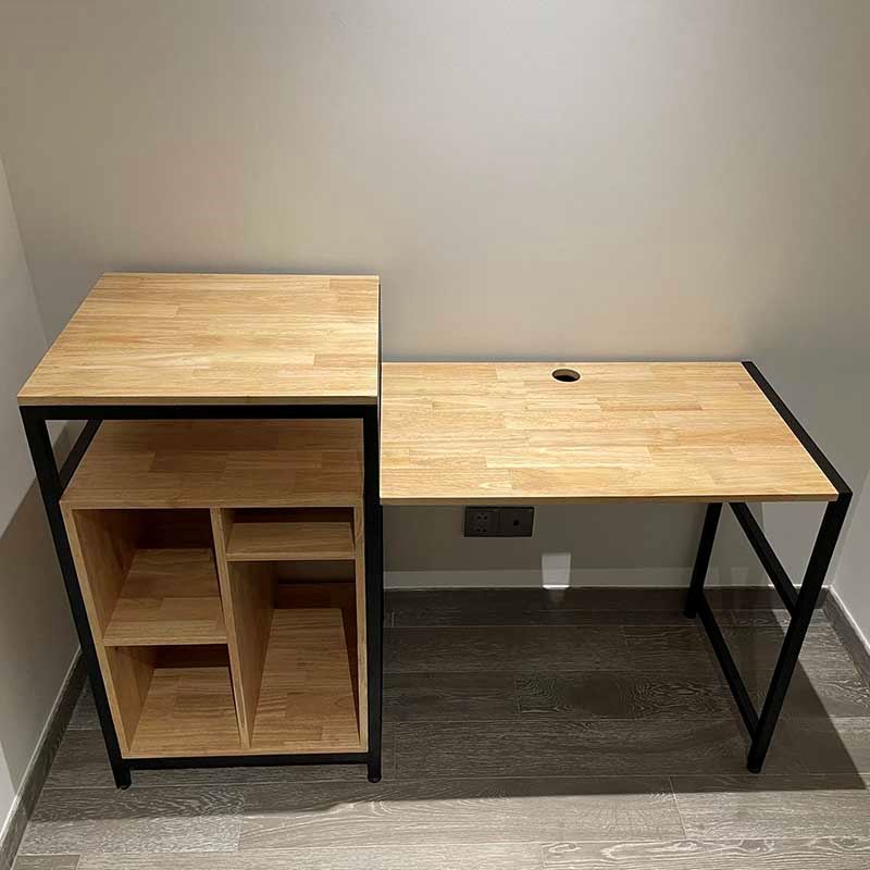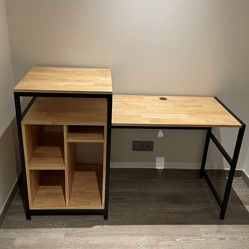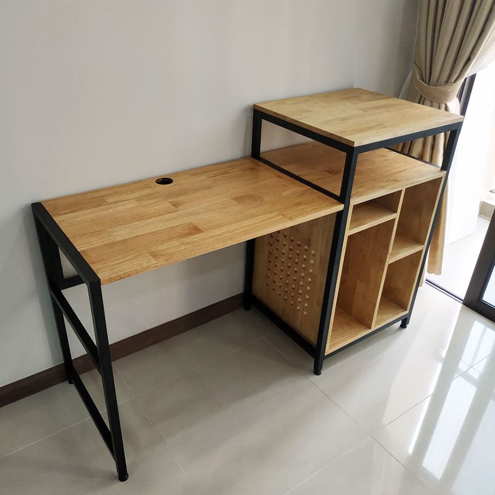 Bàn Vi tính gỗ cao su khung sắt kết hợp kệ (137x50x92cm)