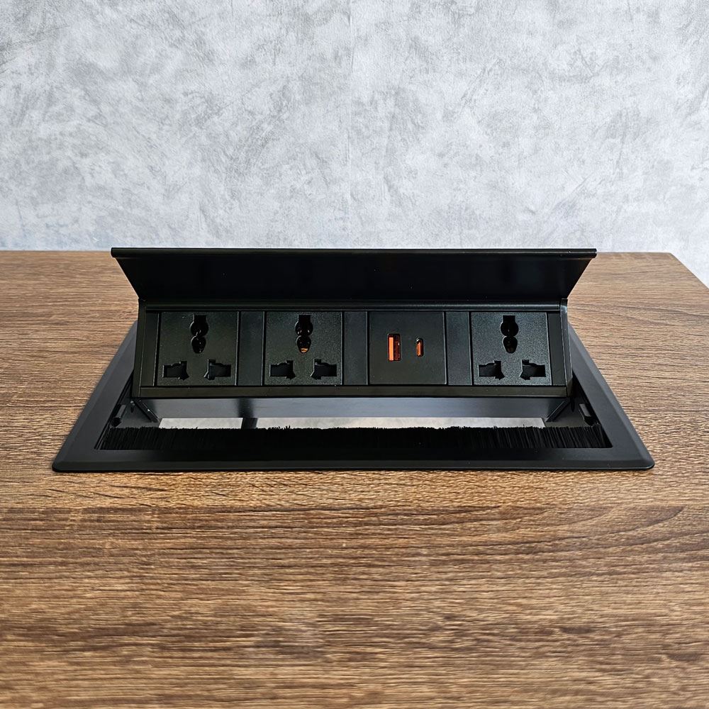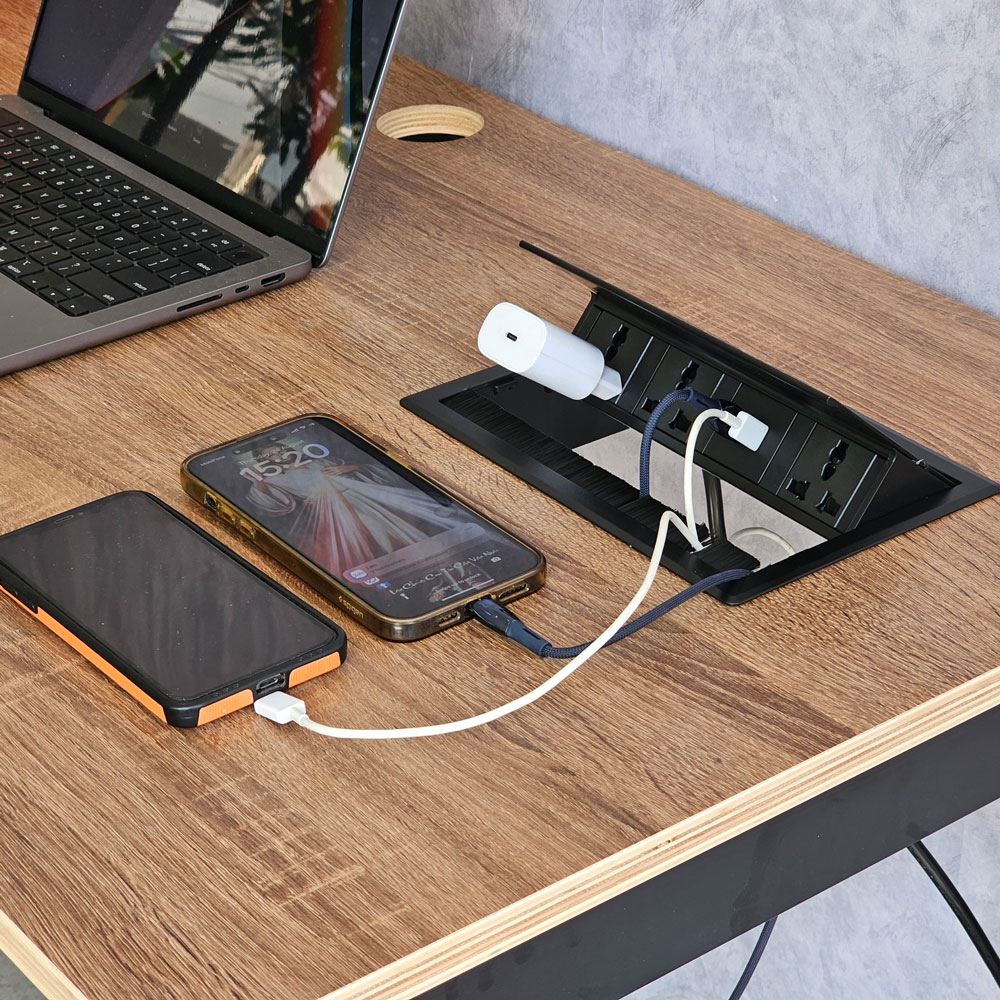 Bàn ZDesk ZD004 được trang bị hộp điện HOEXH303A giúp tối ưu không gian làm việc, và gia tăng thêm tiện ích cho người sử dụng. Hộp điện cung cấp đầy đủ công năng và tiện ích sử dụng cơ bản, giúp tạo độ thông thoáng và tăng tính thẩm mỹ cho khu vực trên mặt bàn. Hộp điện tích hợp nắp trượt ẩn không ảnh hưởng đến diện tích sử dụng mặt bàn. Chất liệu khung nhựa xám ABS chống cháy với độ hoàn thiện cao. Mặt bàn được làm bằng chất liệu gỗ Plywood chân sắt Hệ CONE đã không còn xa lạ gì với khách hàng của HomeOffice, chất lượng bạn đã được công nhận và với việc tích hợp thêm các phụ kiện cao cấp này nhằm đáp ứng các nhu cầu công nghệ hơn của quý khách hàng.
