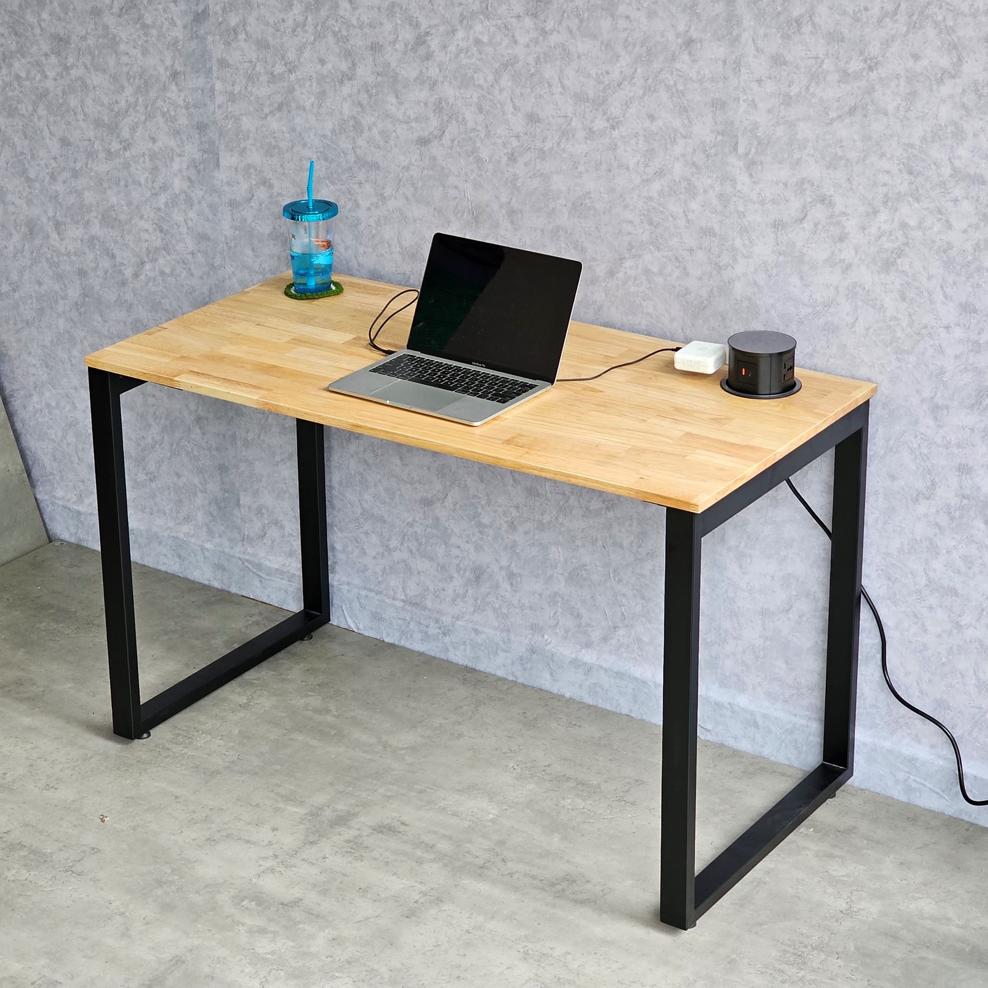Mặt bàn được làm bằng vật liệu chính được chúng tôi lựa chọn và sử dụng là gỗ cao su AA, loại dày 17mm, đã được xử lý qua xấy công nghệ giúp tăng khả năng chống thấm và chống cong vênh. Bề mặt gỗ đã được xử lý PU giúp tăng tính thẩm mỹ và chống thấm nước. Kết hợp với mặt gỗ bàn là hệ khung chân bàn sử dụng cơ cấu lắp ráp ngàm chắc chắn, bề mặt phủ lớp sơn tĩnh điện hạn chế tối đa ăn mòn hoá học, lớp sơn tĩnh điện nâng cao tuổi thọ sản phẩm. Mỗi sản phẩm được hoàn thiện cẩn thận, tỉ mỉ từ công đoạn thiết kế.