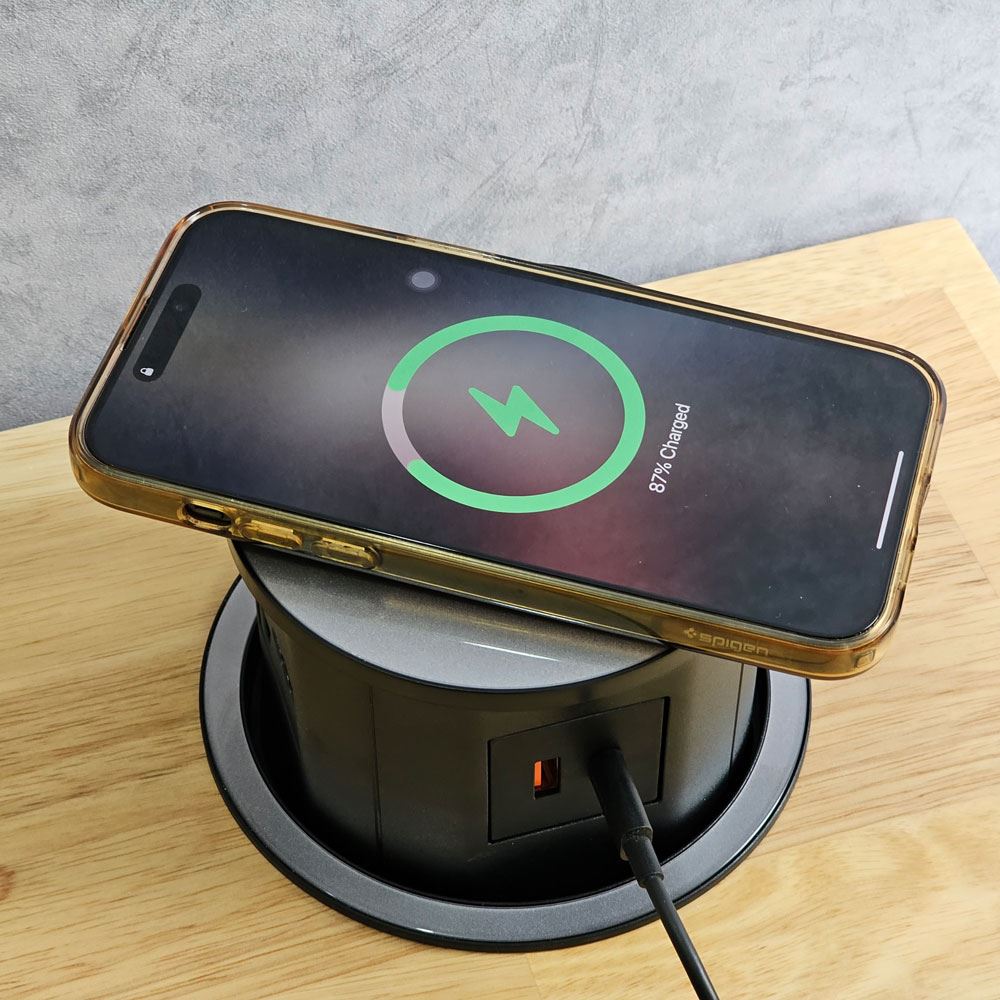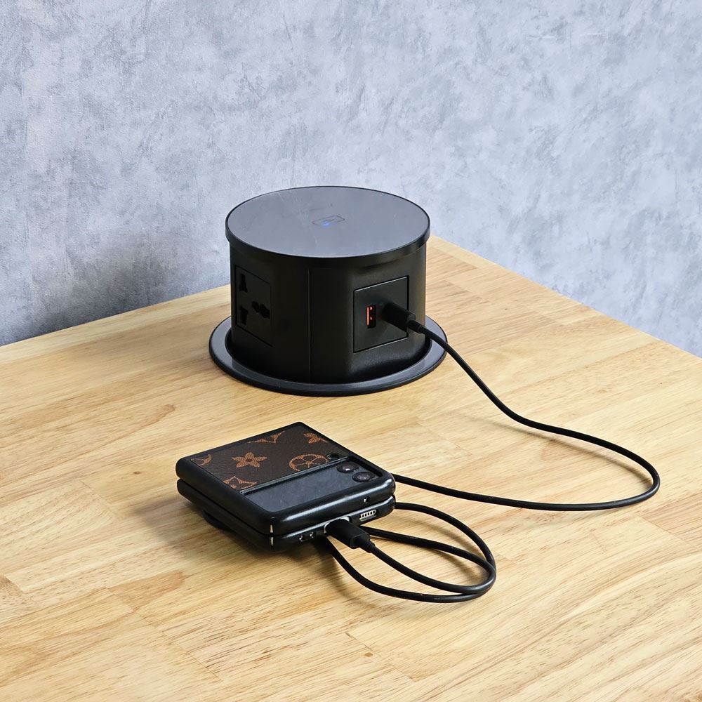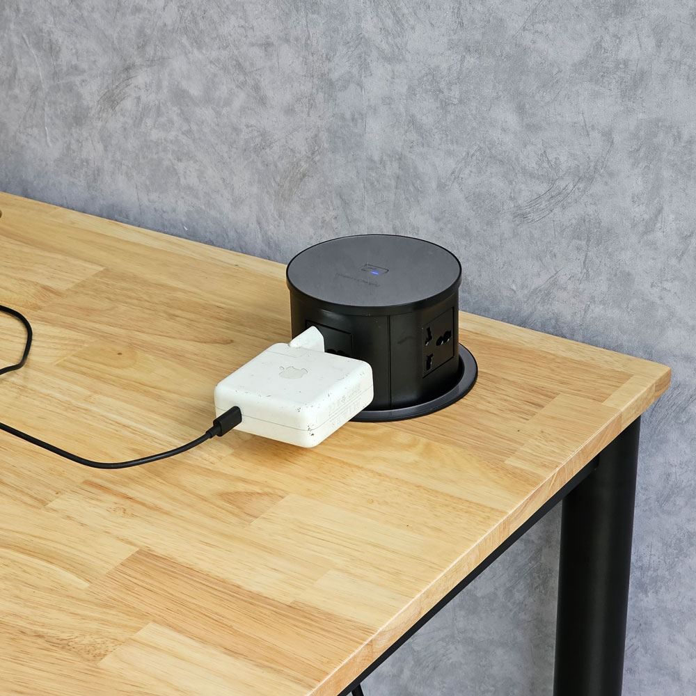 Bàn ZDesk ZD013 là dòng bàn làm việc được thiết kế để dành cho các tín đồ yêu công nghệ. Với mức độ sử dụng nhiều thiết bị điện tử thường xuyên sẽ khiến cho khu vực khu vực mặt bàn bị "quá tải" bởi có quá nhiều "dây rợ", gây cảm giác khó chịu và mất thẩm mỹ. Chính vì thế bàn ZDesk ZD013 được tích hợp thêm một hộp đi dây điện âm bàn giúp bạn dễ dàng hơn trong việc sắp xếp và đi dây, nhờ đó mang lại không gian thoáng đãng và gọn gàng hơn. Bàn ZDesk ZD013 được trang bị thêm hộp điện HOEUPO21C đã được tích hợp sạc nhanh không dây, cổng sạc USB A, USB C, ổ cắm đa năng theo tiêu chuẩn quốc tế, giúp xóa tan lo ngại thiếu thiết bị sạc. Hộp điện âm bàn có dạng đóng mở lên xuống giúp không gian trên mặt bàn luôn gọn gàng và chỉn chu.
