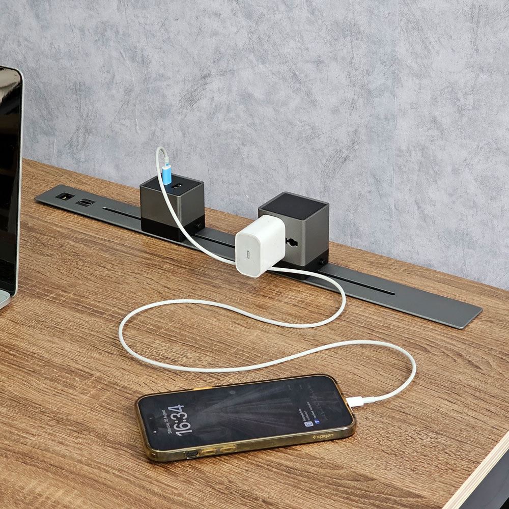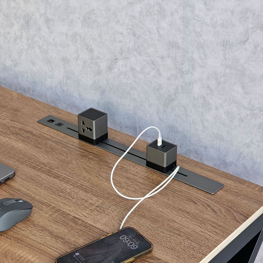 Bàn ZDesk ZD009 với điểm đặc biệt chính là bộ ổ điện ray trượt cực kỳ hiện đại và cao cấp, bộ ổ điện ray trượt được Homeoffice tích hợp sẵn trên mặt bàn với 2 đầu cắm mạng Lan và 1 đầu HDMI tích hợp sẵn trên ray, trong bộ có sẵn 1 ổ cắm đa năng 2 ổ cắm 2 bên và 1 đầu sạc với công USB Type A và một đầu Type C dùng để cắm đầu sạc điện thoại hay các thiết bị điện tử khác. Hai ổ cắm linh động trượt trên ray rất dễ dàng và tiện lợi. Bàn gỗ Plywood chân sắt Rectang đã không còn xa lạ gì với khách hàng của HomeOffice, chất lượng bạn đã được công nhận và với việc tích hợp thêm các phụ kiện cao cấp này nhằm đáp ứng các nhu cầu công nghệ hơn của quý khách hàng.