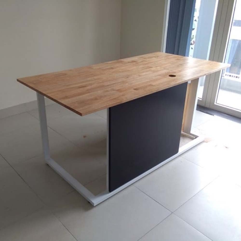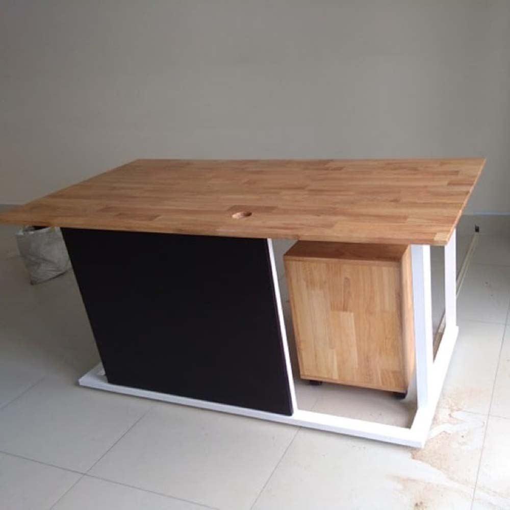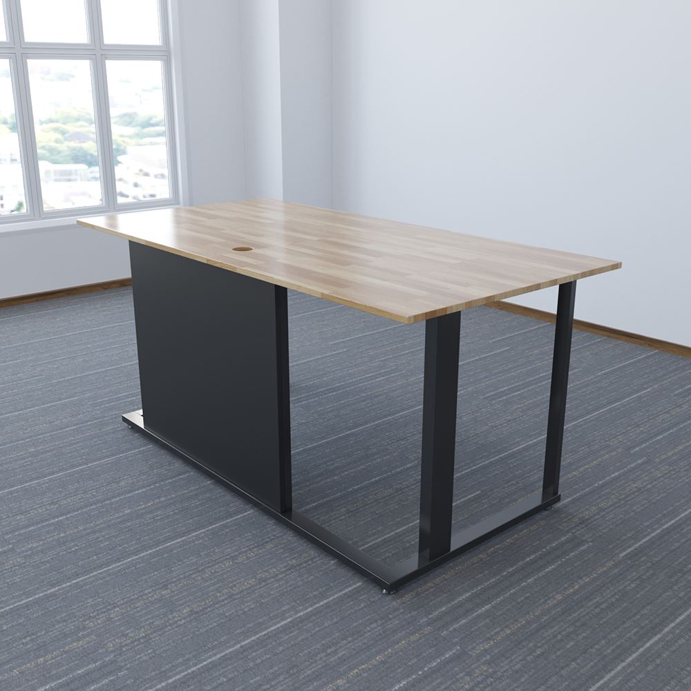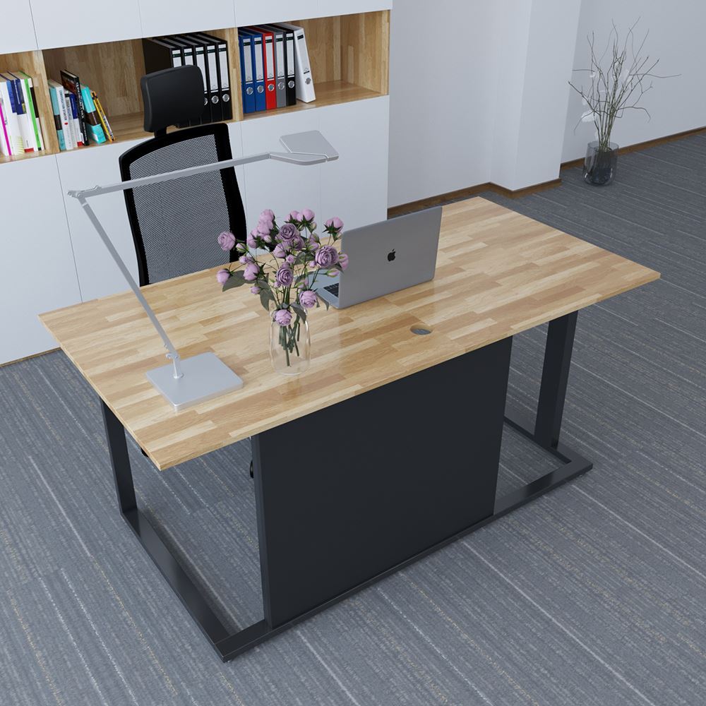 Bàn giám đốc 80x160cm gỗ cao su chân sắt - GD68042- Với chất liệu mặt bàn gỗ cao su tiêu chuẩn AA dày 17mm xử lý Pu kỹ càng màu sắc tự nhiên cực đẹp kết hợp với khung chân sắt chắc chắn. Tấm chắn bàn sơn đen kết hợp với khung sắt tạo điểm nhấn cho sản phẩm.