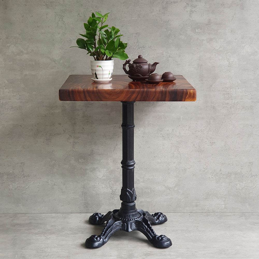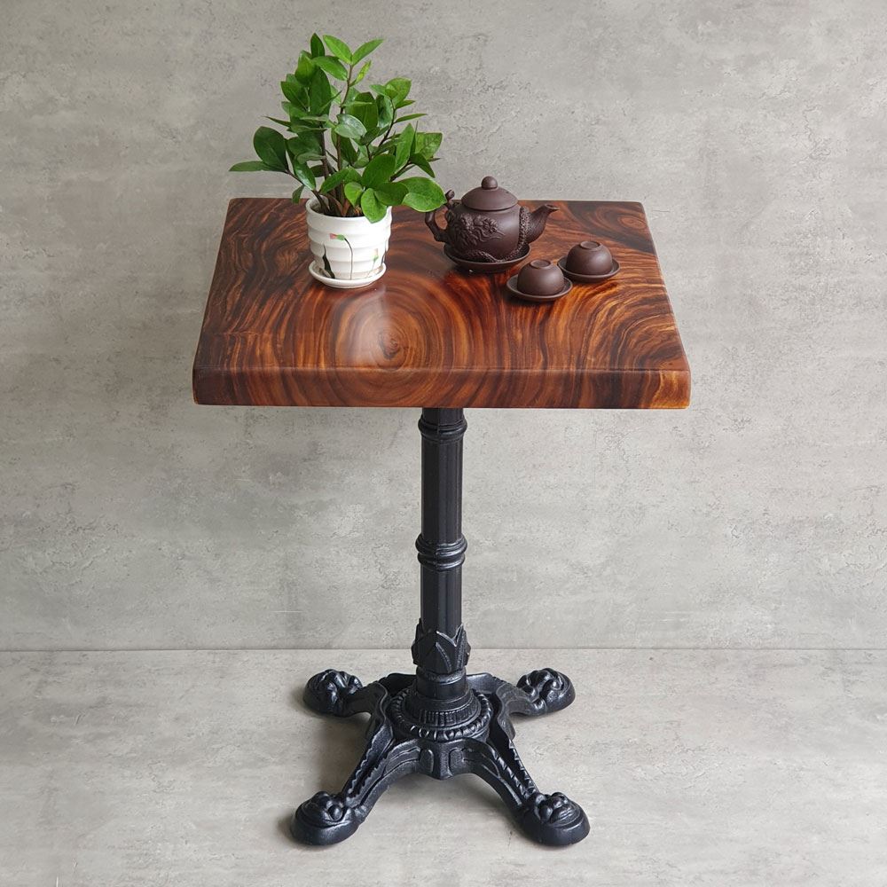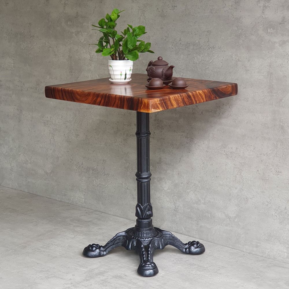 Bàn cafe vuông gỗ me tây dày 5 cm chân gang đúc 4 chĩa