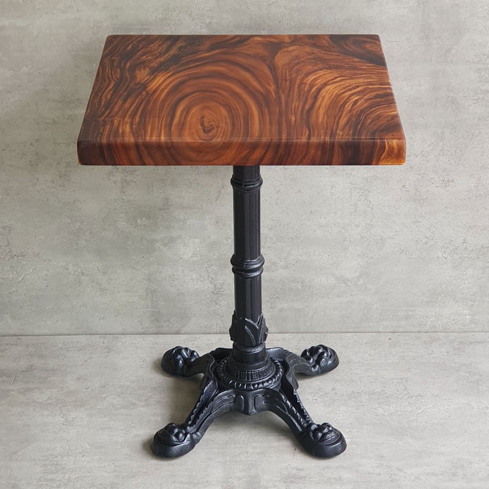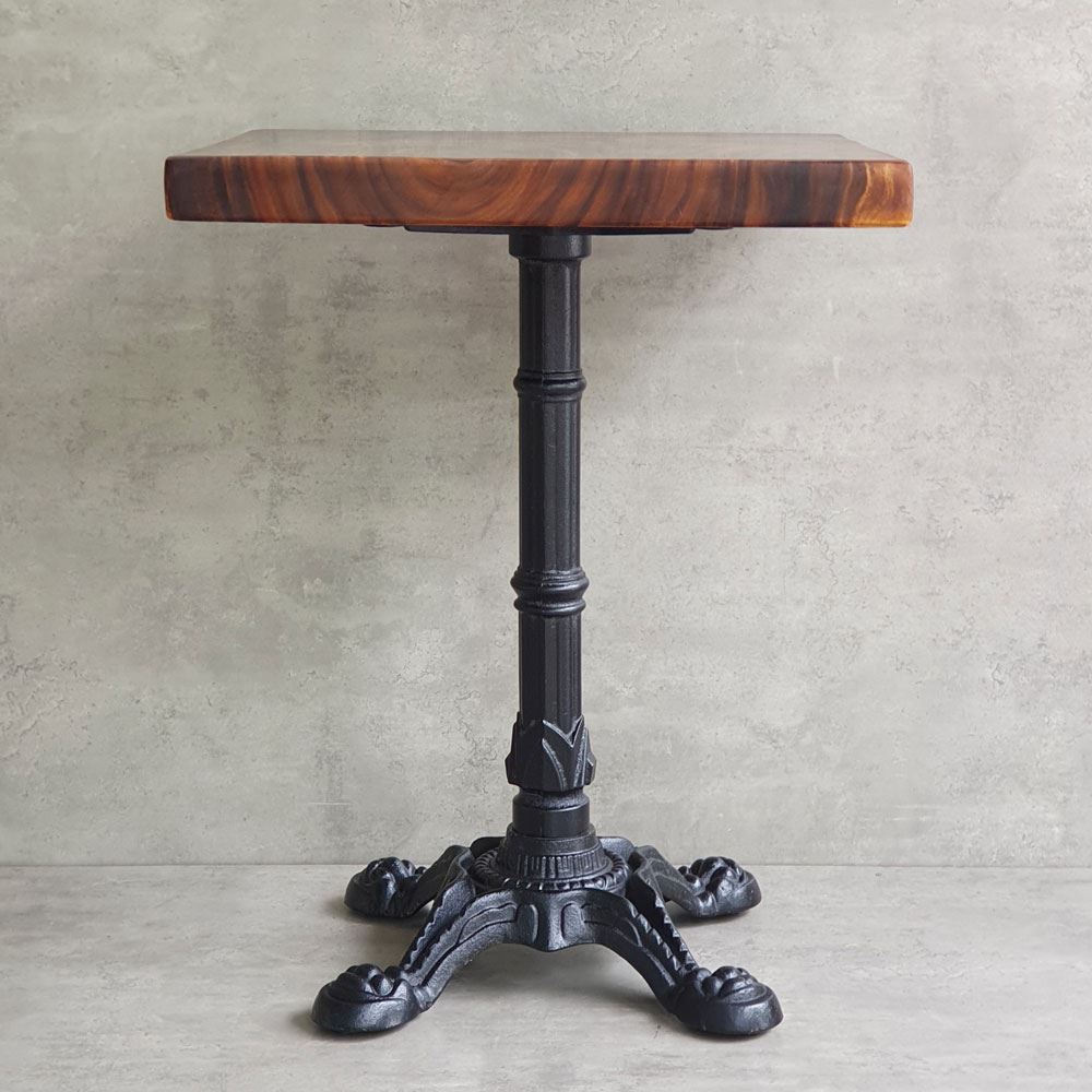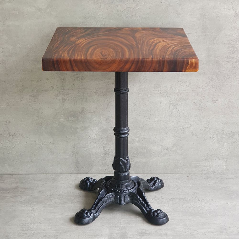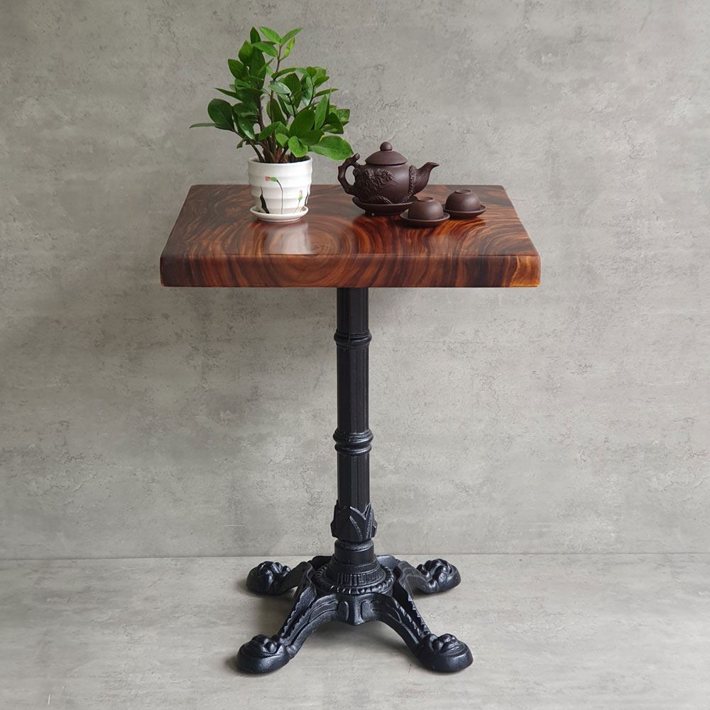 Bàn cafe vuông gỗ me tây dày 5 cm chân gang đúc 4 chĩa