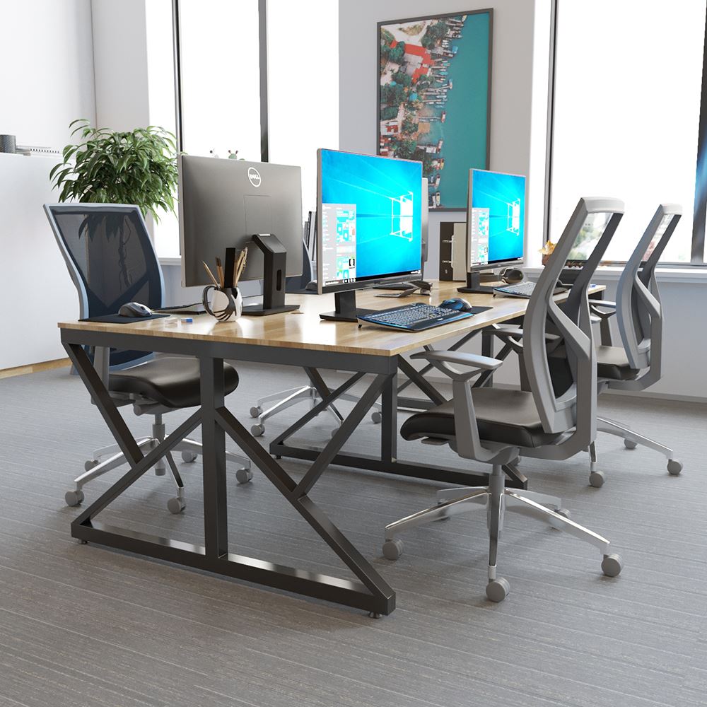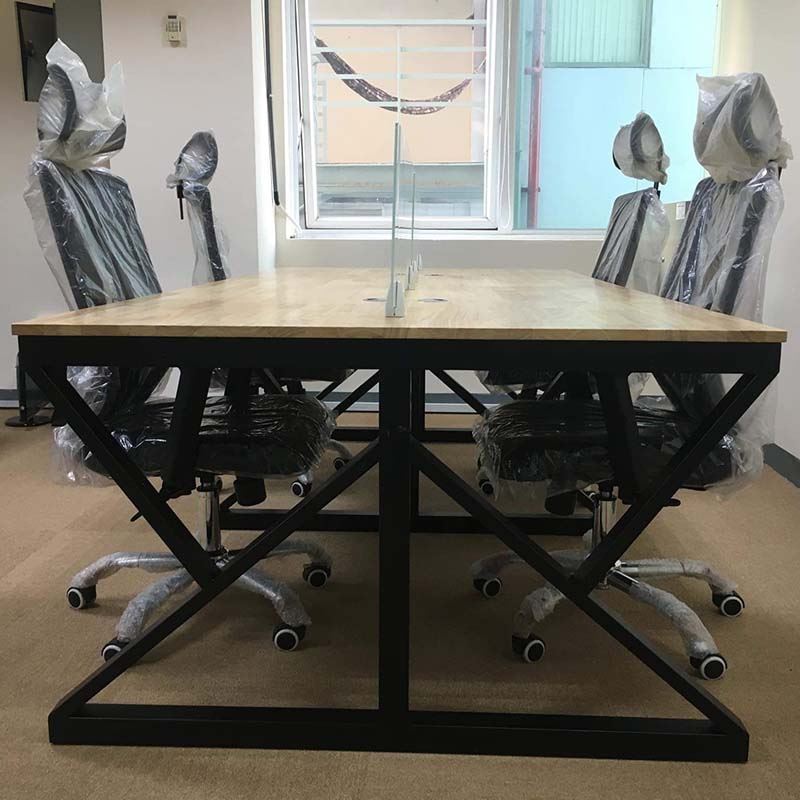 Bàn cụm 4 chỗ 120x240cm BNV68050 là mẫu bàn bàn văn phòng dành cho 4 người ngồi. Bàn sử dụng chất liệu gỗ cao su ghép tiêu chuẩn AA dày 17mm Pu màu gỗ tự nhiên luôn có một vẻ đẹp riêng, thân thiện với môi trường, đối với các văn phòng mở, văn phòng kết hợp với cây xanh thì việc sử dụng bàn gỗ cao su chân sắt kết hợp trở nên hoàn hảo.