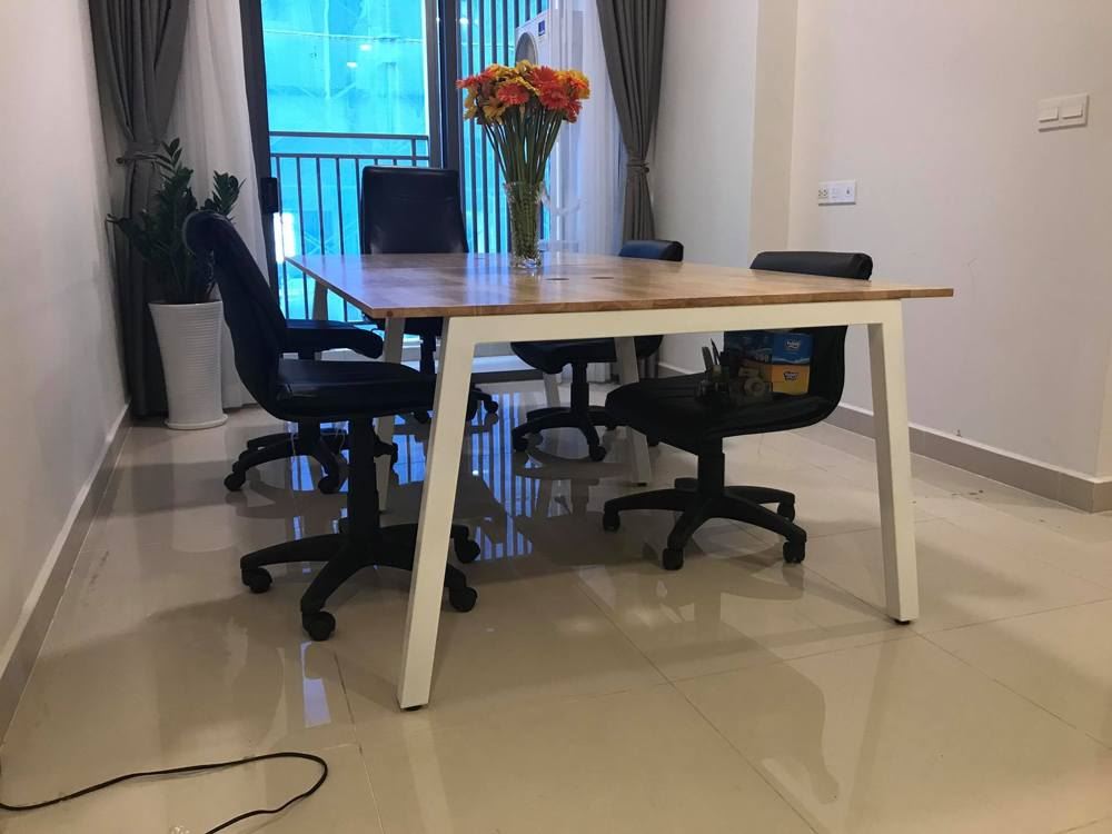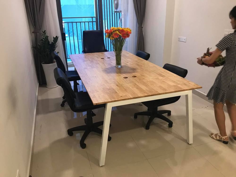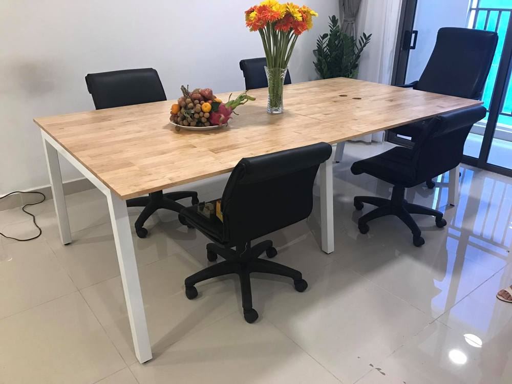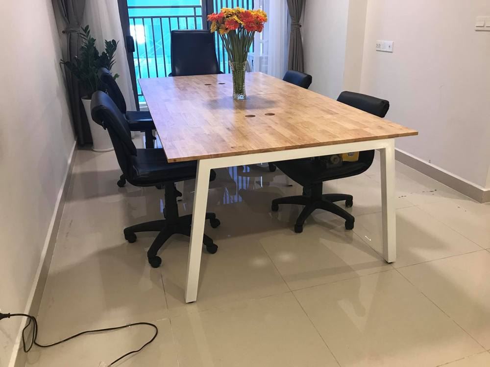 Bàn cụm 4 chỗ ngồi chân sắt lắp ráp gỗ cao su
