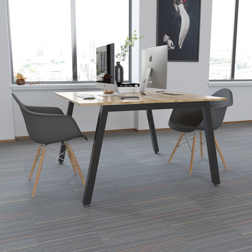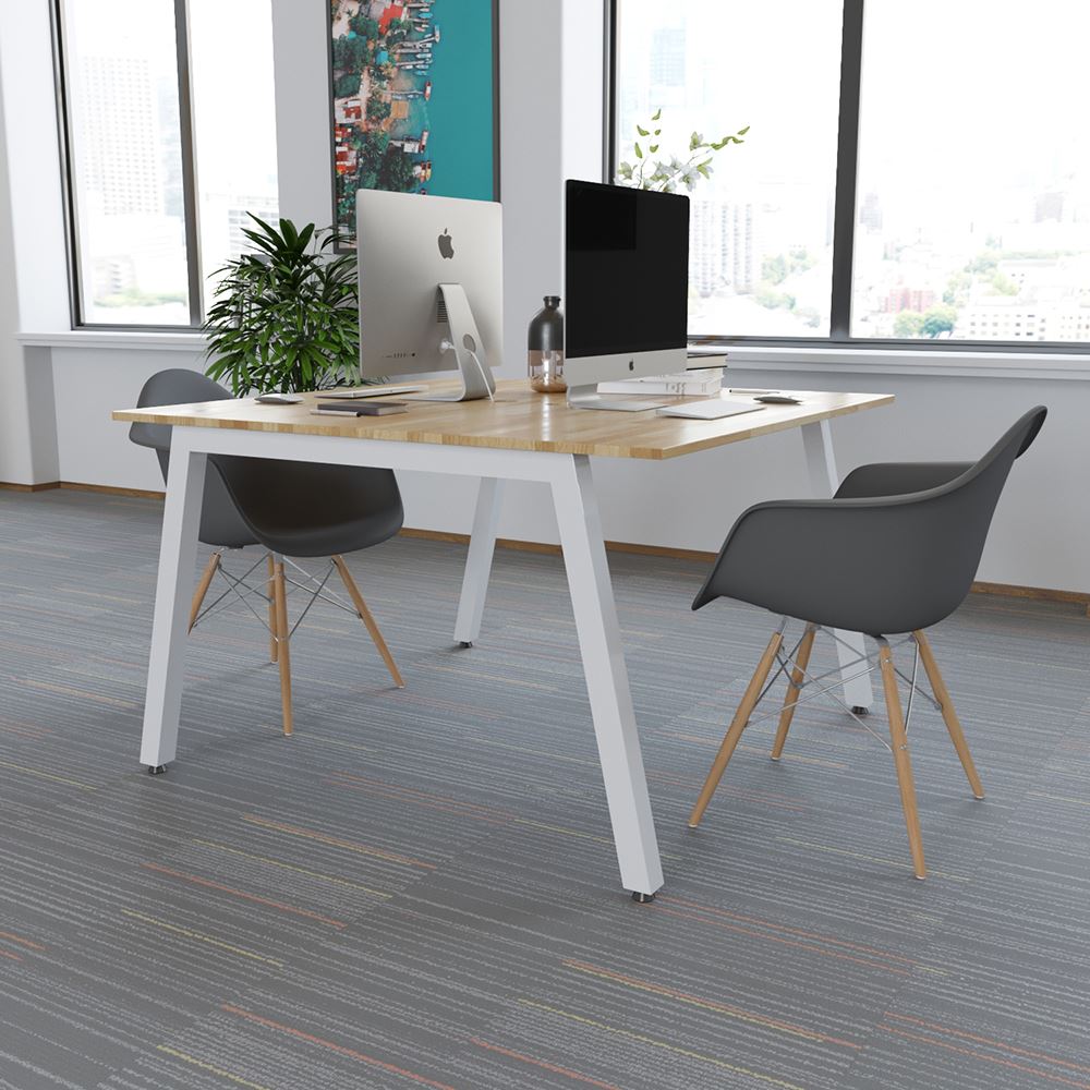 BNV68062 - Bàn cụm 2 gỗ cao su chân sắt vuông 50mm lắp ráp 120x120x75cm. Bàn văn phòng gỗ cao su ghép tiêu chuẩn AA dày 17mm Pu màu gỗ tự nhiên luôn có một vẻ đẹp riêng, thân thiện với môi trường, đối với các văn phòng mở, văn phòng kết hợp với cây xanh thì việc sử dụng bàn gỗ cao su chân sắt kết hợp trở nên hoàn hảo.