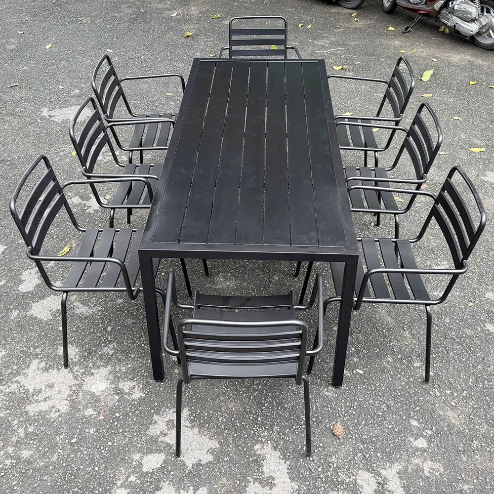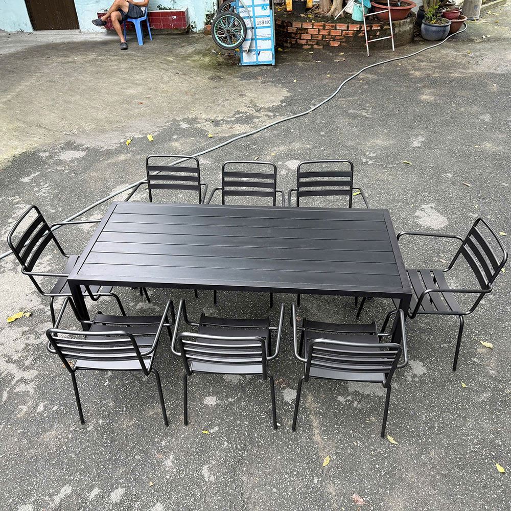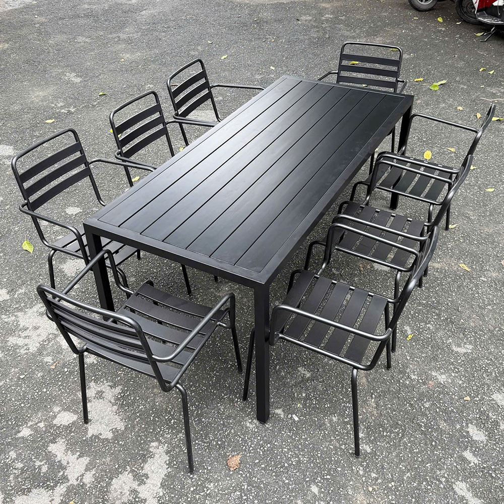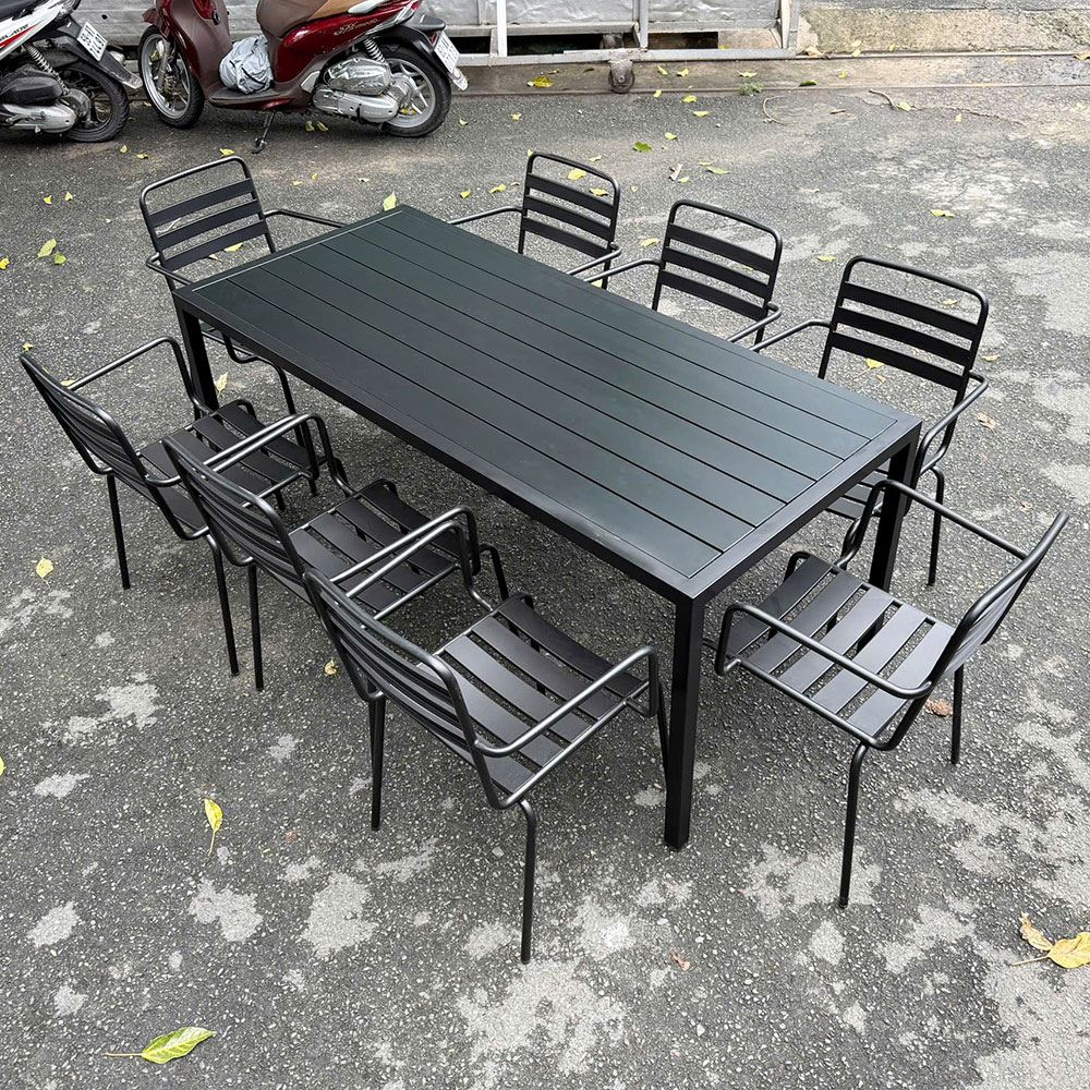 Bộ bàn 180cm và 8 ghế sắt ngoài trời - CBNT003 là combo gồm 1 bàn 180x80cm và 8 ghế sắt sơn tĩnh điện. Thông tin chi tết từng sản phẩm