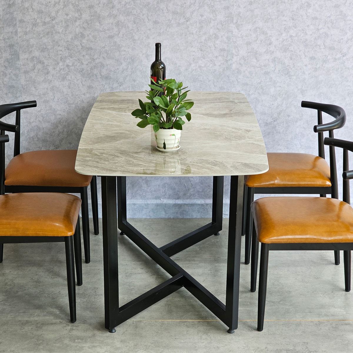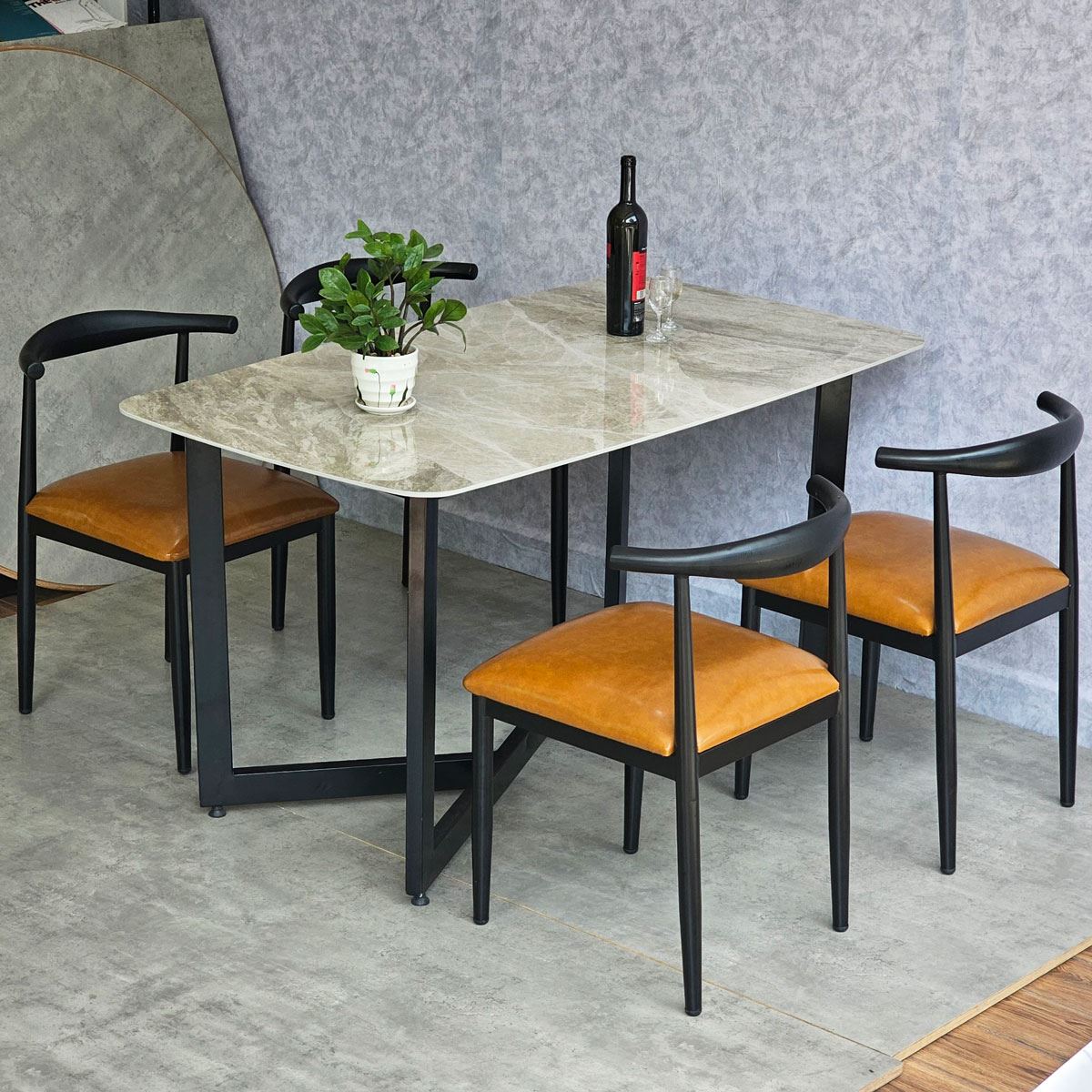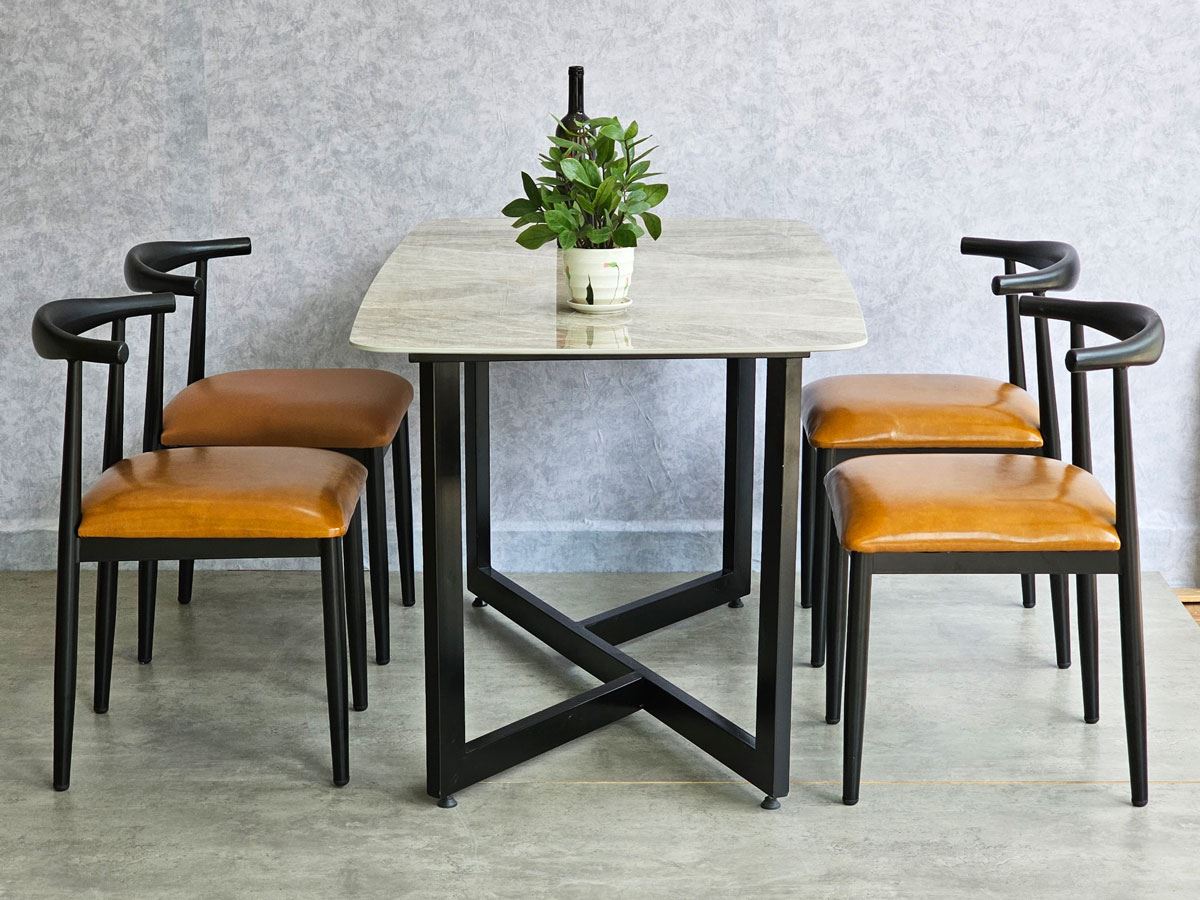 Trong combo CBBA123 bao gồm 1 bàn ăn 140x80cm đá ceramic cao cấp và 4 ghế Bull sắt.
