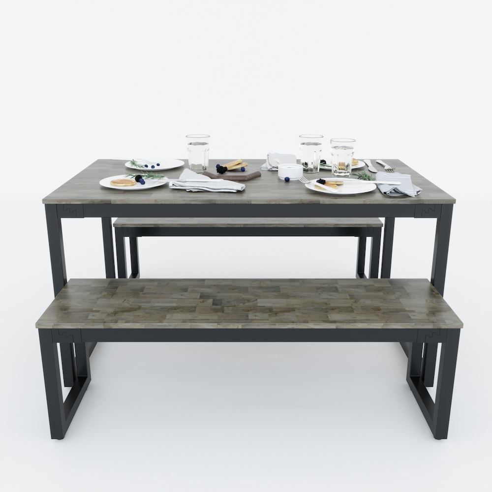 Bộ Bàn Ghế Ăn CBBA036 gồm 1 bàn ăn và 2 ghế băng dài. Vật liệu chính để tạo nên bộ bàn ăn CBBA036 là gỗ cao su tự nhiên dày 17mm kết hợp cùng khung sắt đem đến sản phẩm vừa mang nét mộc mạc lại vừa hiện đại. Mặt gỗ được xử lý PU chống thấm nước giúp bạn yên tâm vệ sinh bàn mà không sợ bong tróc. Kết hợp mặt bàn gỗ là hệ khung chân sắt cơ cấu lắp ráp, bề mặt phủ lớp sơn tĩnh điện cao cấp chống rỉ sét.