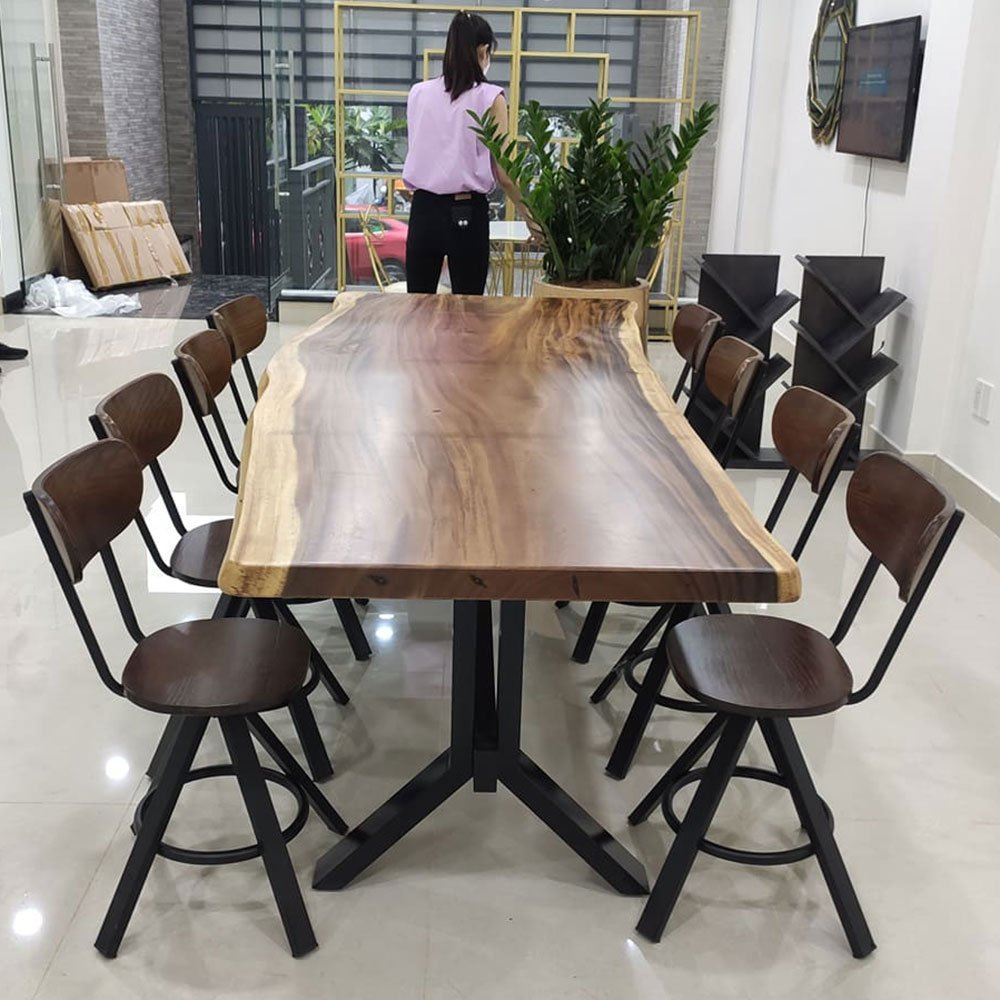 1 Bàn Gỗ Me Tây Nguyên Tấm kích thước 220x90cm dày 5cm kết hợp khung chân sắt sơn tĩnh điện