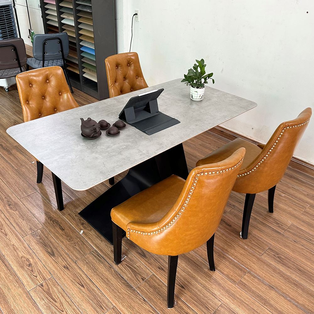 Bộ Bàn Ăn Gỗ Plywood và 4 Ghế Nệm Lưng Cao CBBA089 sở hữu kiểu dáng sang trọng và bắt mắt bởi sự kết hợp của bàn ăn mặt gỗ Plywood màu bê tông với bàn ăn là ghế ăn lưng cao với toàn bộ phần phần lưng tựa được bọc da PU màu nâu cao cấp kết hợp với khung chân sắt màu đen sơn tĩnh điện chất lượng cao. Các combo của Homeoffice giúp khách hàng tiết kiệm hơn rất nhiều so với mua lẻ từng sản phẩm.