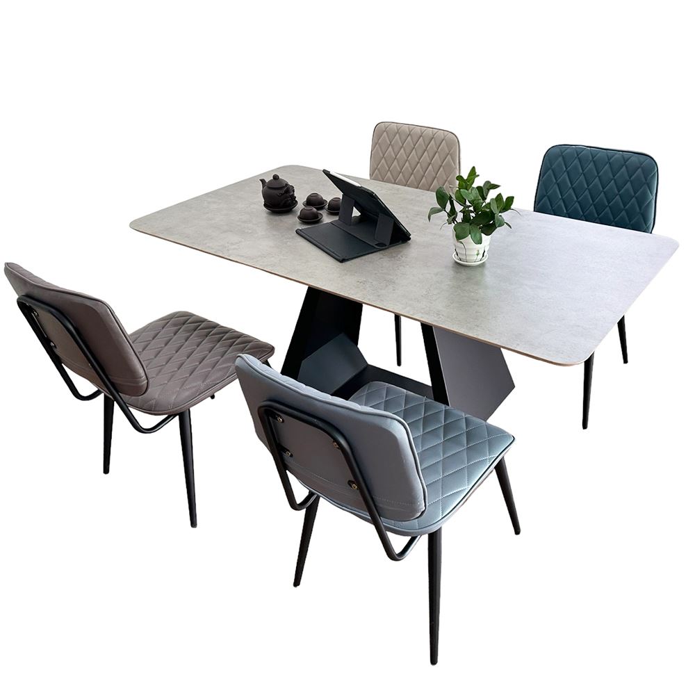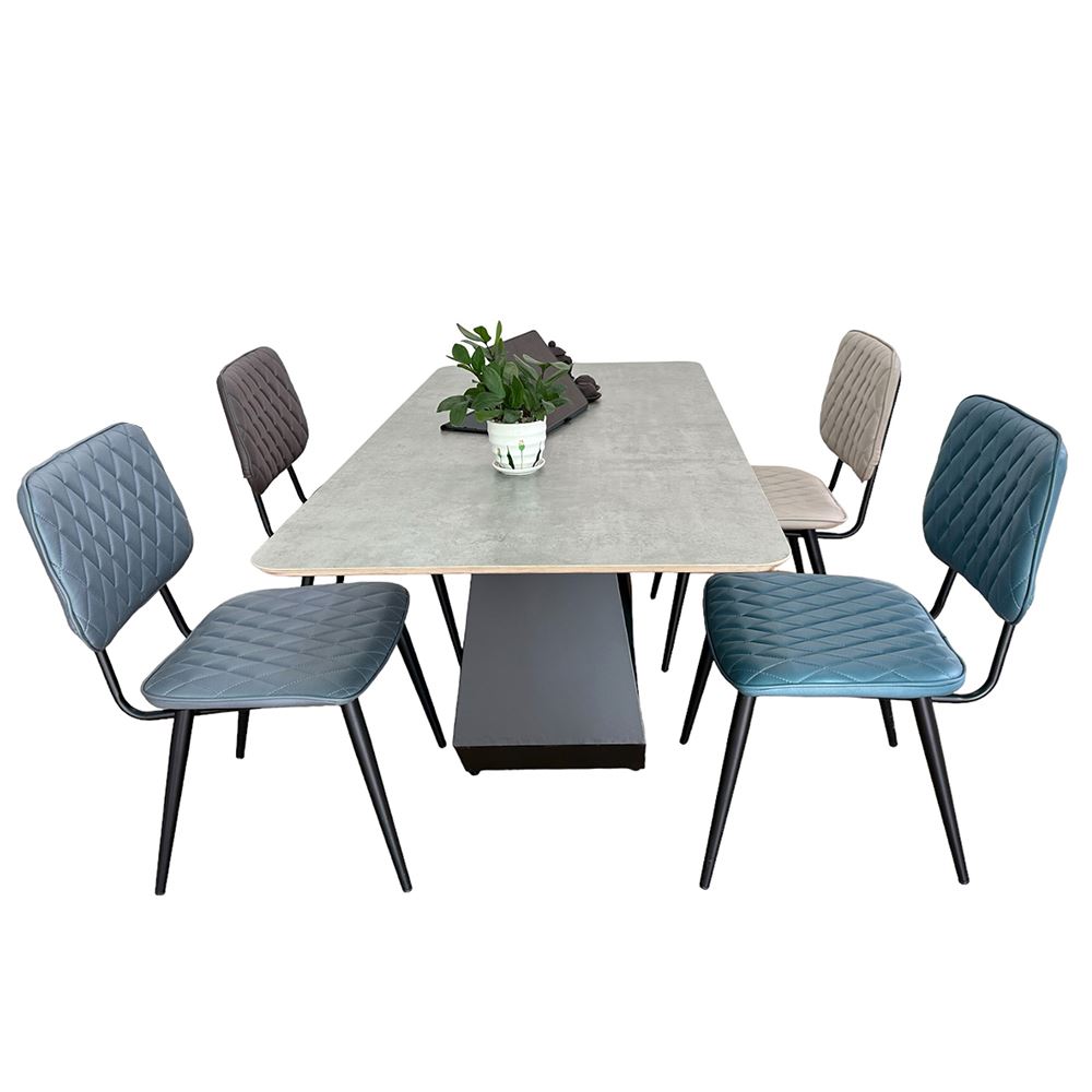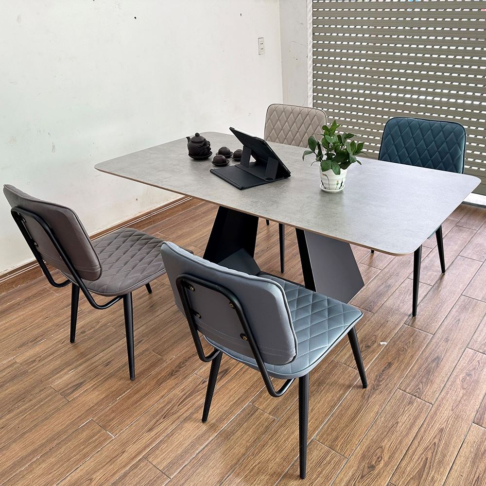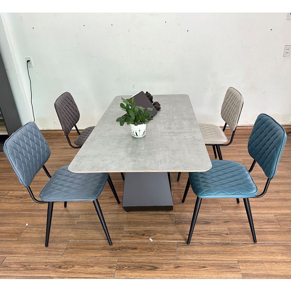 Bộ Bàn Ăn Gỗ Plywood và 4 Ghế Nệm Nhiều Màu CBBA086 là bộ sản phẩm kích thước nhỏ phù hợp với các không gian căn hộ nhỏ hay có thể dùng trong các nhà hàng, quán ăn với sự kết hợp của bàn ăn 1m4x80cm mặt gỗ Plywood giả màu bê tông và 4 ghế ăn chân sắt nệm simili nhiều màu rất vừa vặn và đẹp mắt. Nếu quý khách đang tìm kiếm bộ bàn ghế ăn độc đáo và sang trọng thì bộ bàn ghế ăn CBBA086 là lựa chọn không thể bỏ qua.