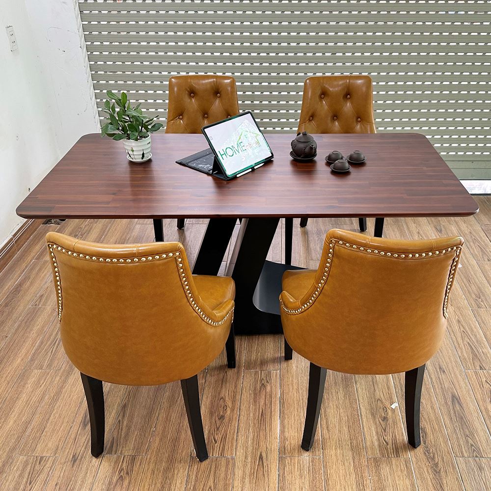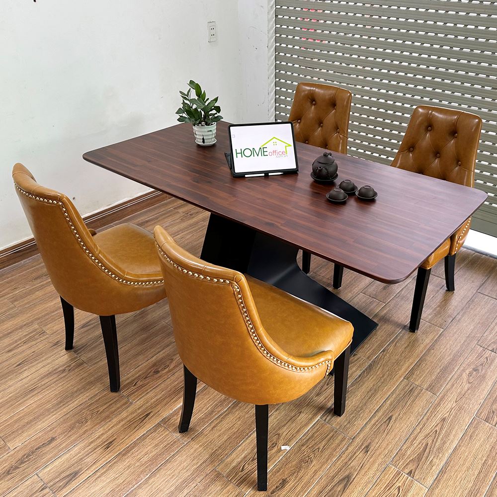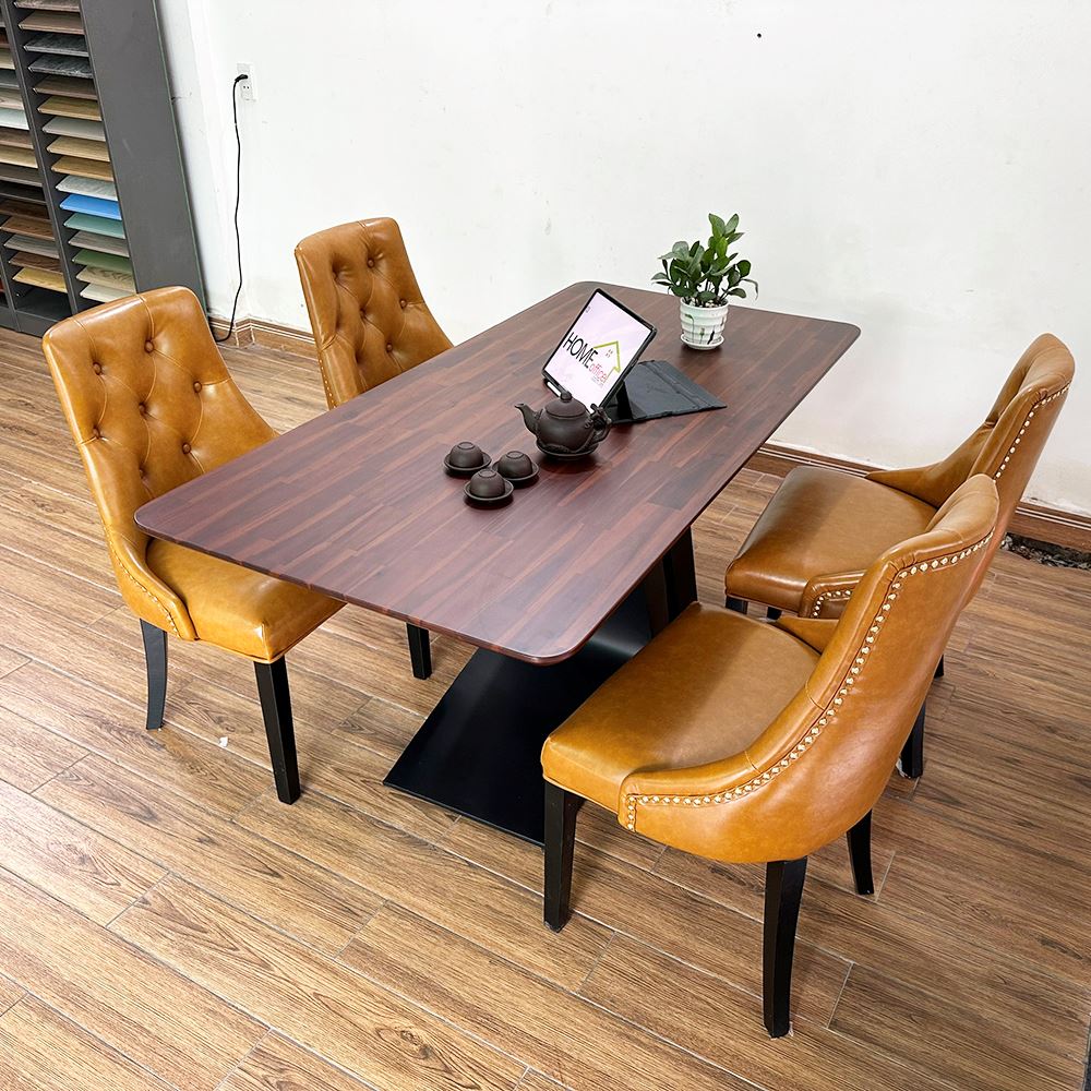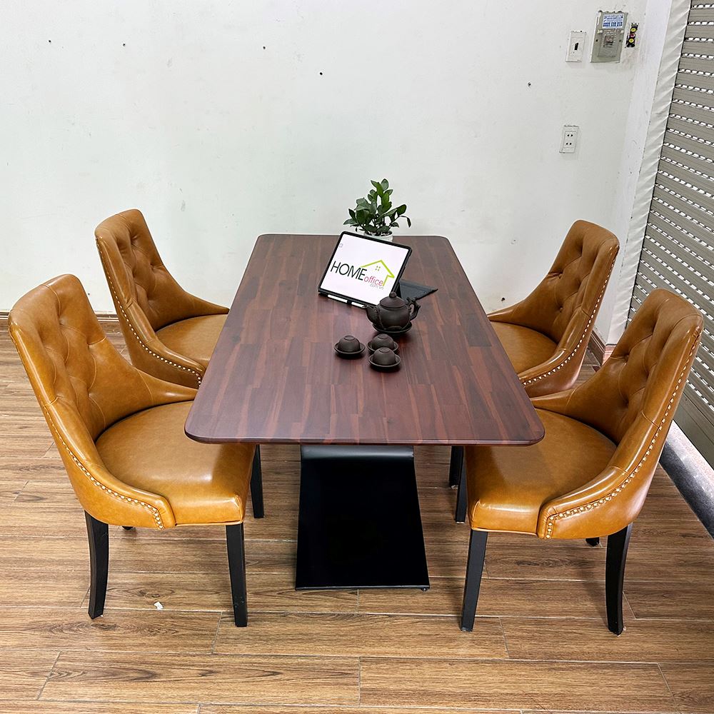 Bộ Bàn Ăn Gỗ Tràm Và 4 Ghế Da Lưng Cao CBBA090 sở hữu kiểu dáng sang trọng và bắt mắt bởi sự kết hợp của bàn ăn mặt Gỗ Tràm màu cánh gián là ghế ăn lưng cao với toàn bộ phần phần lưng tựa được bọc da PU màu nâu cao cấp kết hợp với khung chân sắt màu đen sơn tĩnh điện chất lượng cao. Các combo của Homeoffice giúp khách hàng tiết kiệm hơn rất nhiều so với mua lẻ từng sản phẩm.