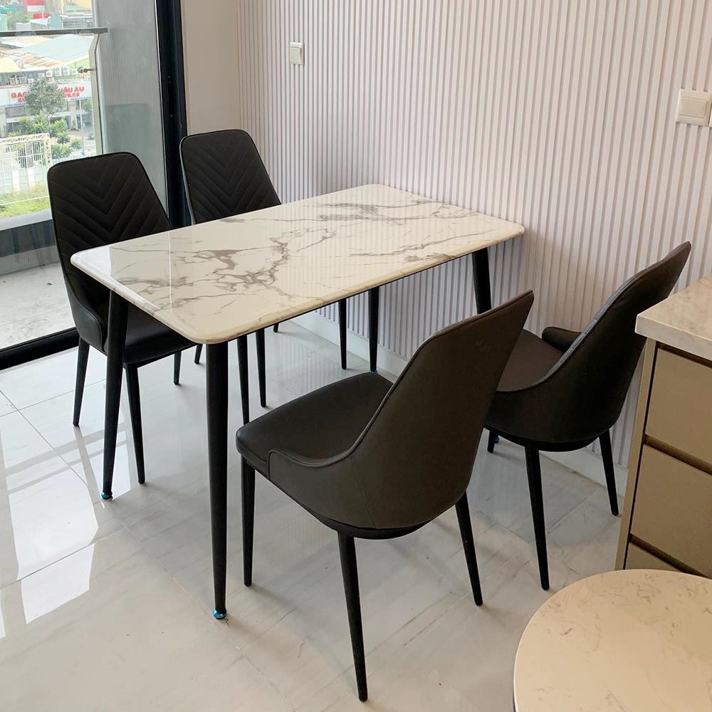 Bộ Bàn Ăn Mặt Đá Và 4 Ghế Nệm Xám CBBA077 là bộ sản phẩm kích thước nhỏ phù hợp với các không gian căn hộ nhỏ hay có thể dùng trong các nhà hàng, quán ăn. Nếu quý khách đang tìm kiếm bộ bàn ghế ăn dành cho 4 người kiểu dáng sang trọng, hiện đại thì đây sẽ là một sự lựa chọn không thể bỏ qua.