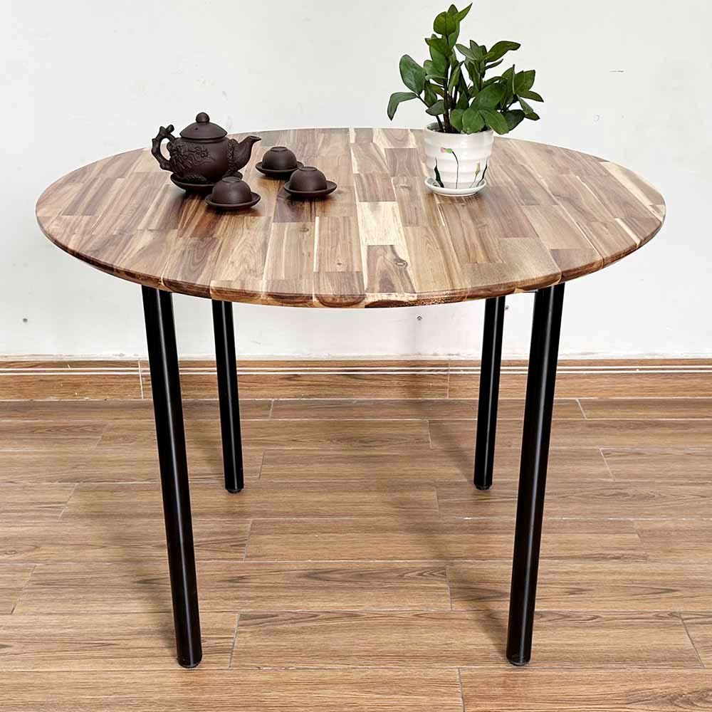 Bộ bàn ăn tròn 1m gỗ tràm và 4 ghế nệm CBBA108 là combo được kết hợp từ bàn tròn đường kính 1m mặt gỗ Tràm dày 25mm chân sắt tròn và 4 ghế nệm bọc simili chân sắt. Kiểu dáng đơn giản, kích thước nhỏ gọn phù hợp với nhiều không gian từ bàn họp văn phòng đến bàn ghế ăn nhỏ gọn cho gia đình. Mẫu bàn tròn được nhiều người dùng ưa chuộng vì khả năng tiết kiệm diện tích bày trí mang đến không gian thoải mái, thoáng đãng.