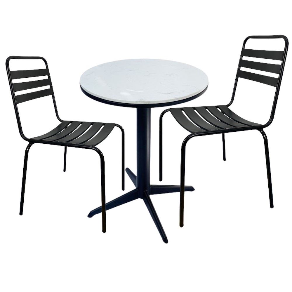 Bàn cafe tròn mặt đá trắng kết hợp chân sắt đen sơn tĩnh điện chắc chắn