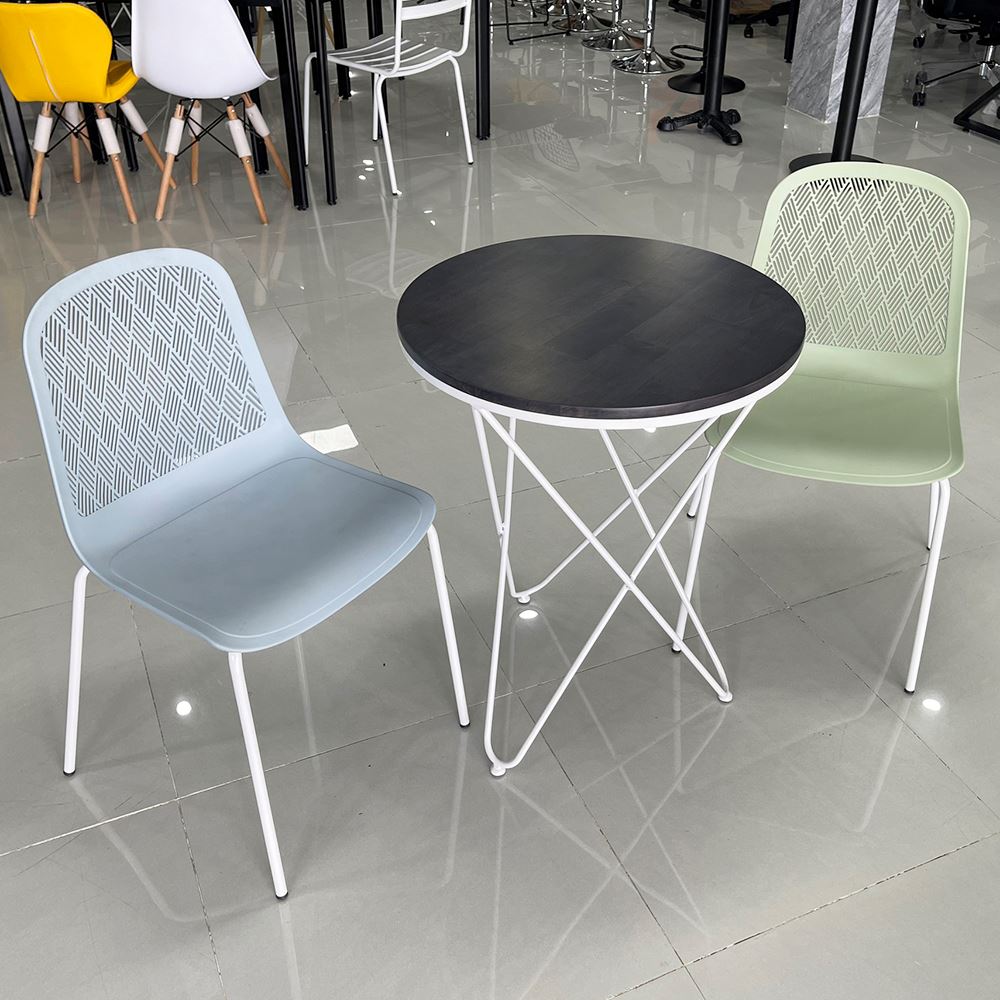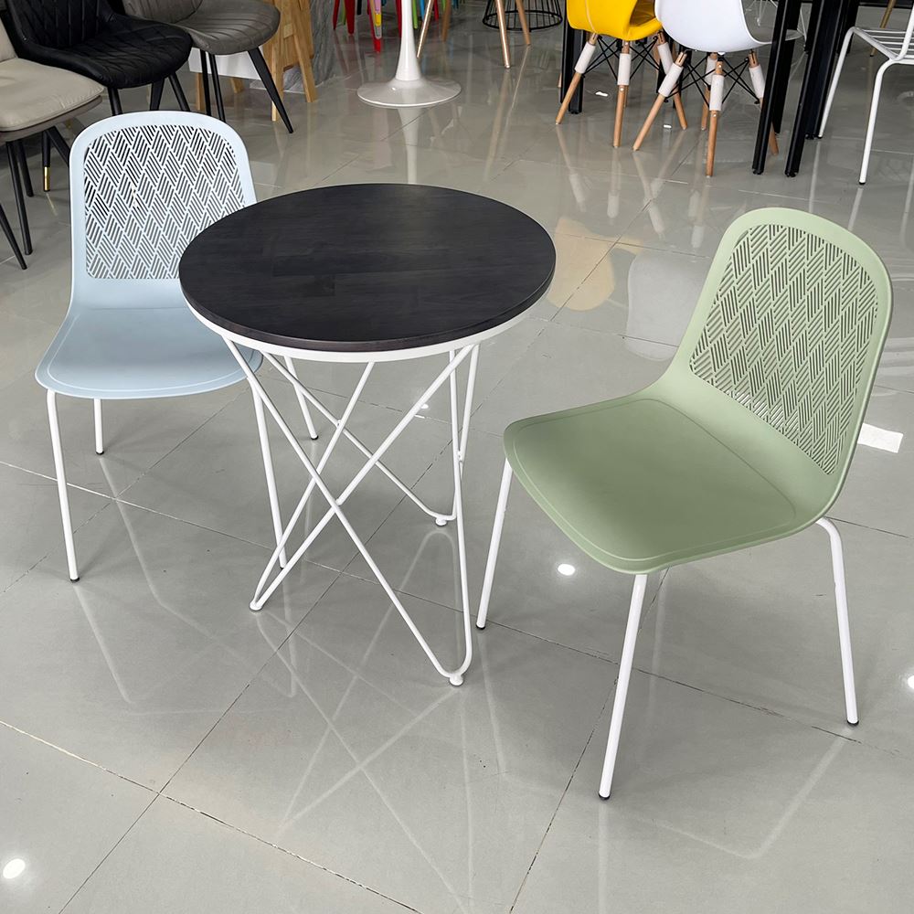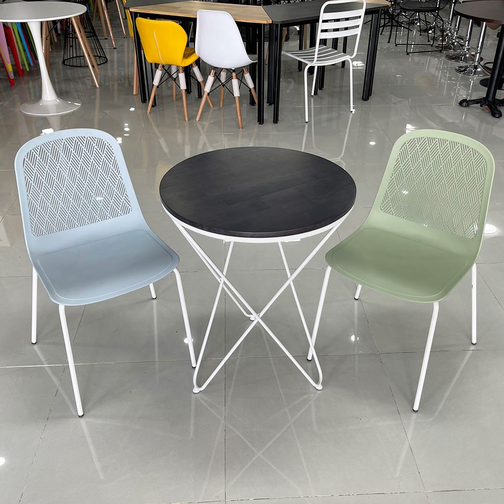 Bộ Bàn Ghế Cafe 2 Người CBCF160 được kết hợp từ bàn tròn 60cm gỗ cao su và lưng nhựa nhiều màu chân sắt sơn tĩnh điện chắc chắn. Mặt bàn gỗ cao su được xử lý chống thấm nước kết hợp chân sắt sơn tĩnh điện đảm bảo độ bền cao. Bộ sản phẩm CBCF160 với thiết kế phong cách hiện đại, đơn giản phù hợp với hầu hết không gian từ quán ăn, quán cafe hay dùng trong gia đình đều được.