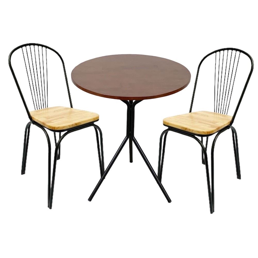 Bộ Bàn Cafe Tròn 60cm Và 2 Ghế Mặt Gỗ Lưng Tựa Sắt