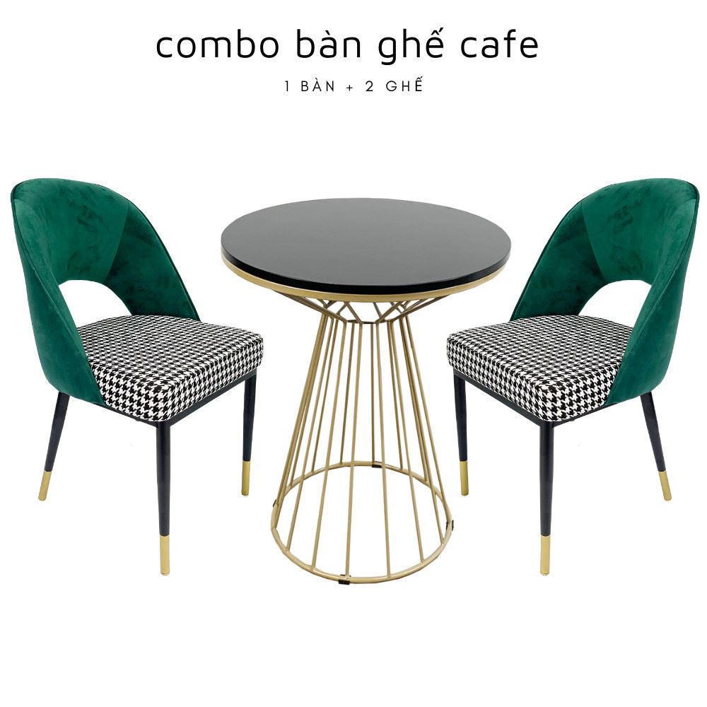 Bộ bàn cafe tròn và 2 ghế nệm vải caro