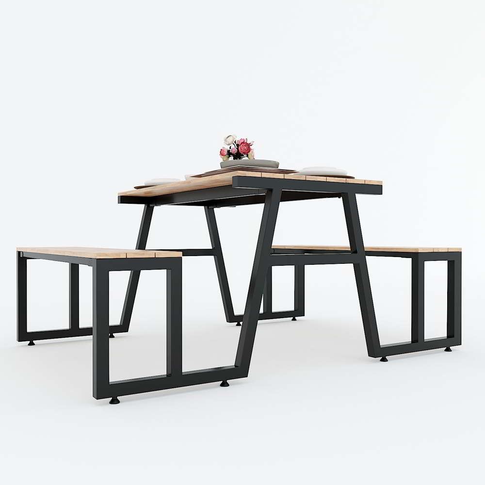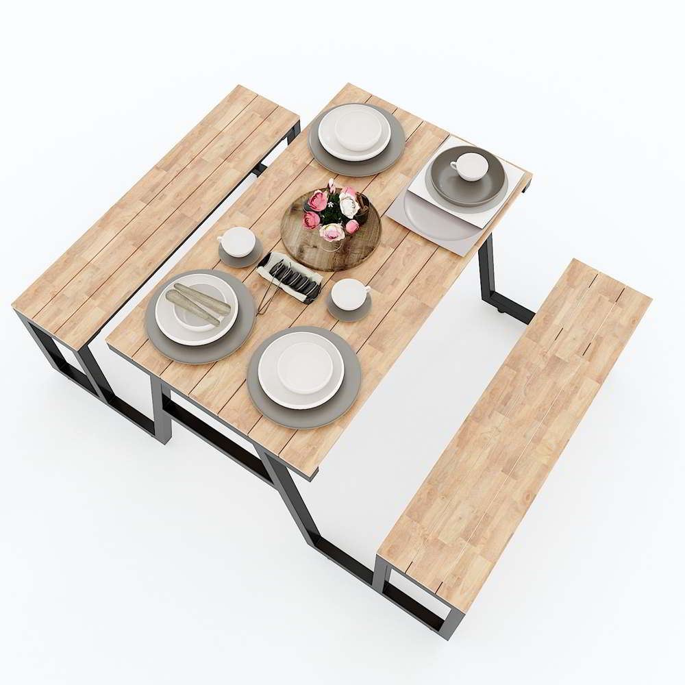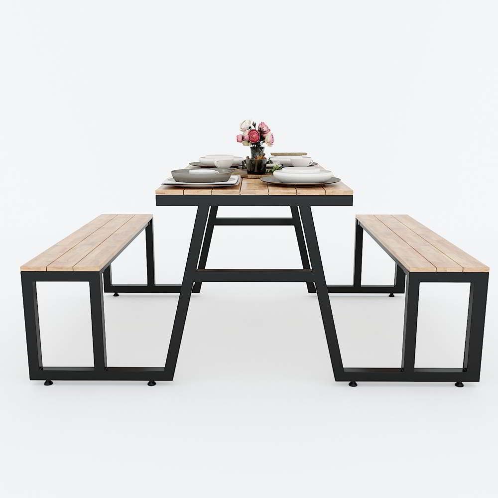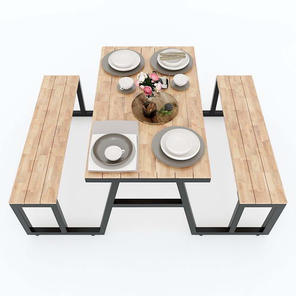 Combo bộ bàn ghế gỗ cao su khung sắt lắp ráp CBBA028 gồm 1 bàn ăn và 2 ghế băng dài gắn liền với nhau. Vật liệu chính để tạo nên bộ bàn ăn CBBA028 là gỗ cao su kết hợp cùng khung sắt đem đến sản phẩm vừa mang nét mộc mạc lại vừa hiện đại. Mặt gỗ được hoàn thiện từ gỗ cao su tự nhiên với đặc điểm nổi bật là độ bền cao, mặt gỗ được xử lý PU chống thấm nước, cong vênh giúp bạn yên tâm vệ sinh bàn mà không sợ bong tróc. Chân bàn được thiết kế hơi chếch ra một góc để có thể tăng thêm khả năng chịu lực của sản phẩm đồng thời tạo sự vững chãi, an toàn khi sử dụng.