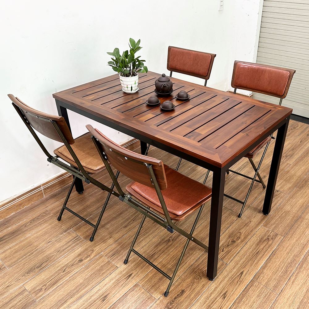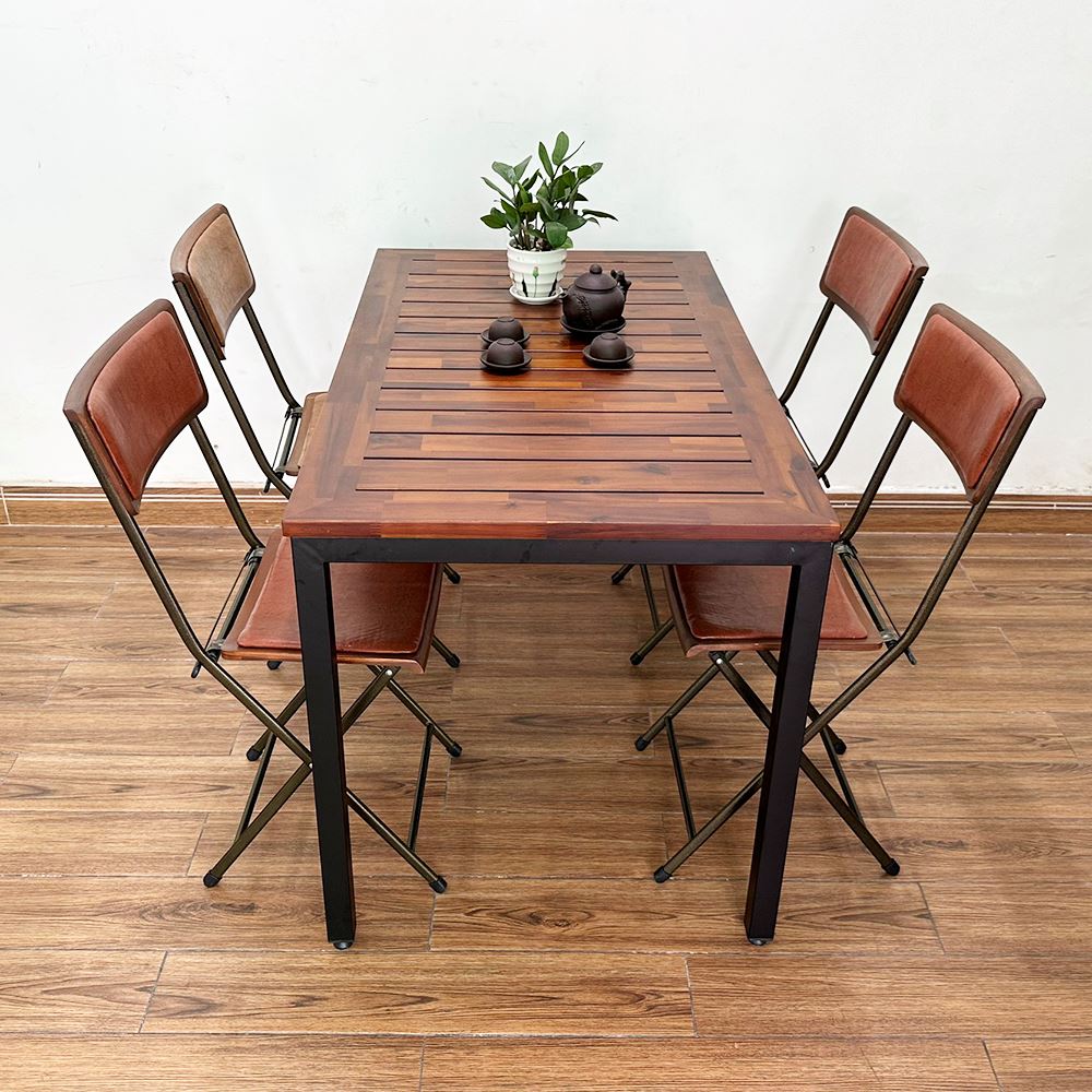 Bộ bàn ghế cafe, bàn ghế ngoài trời CBCF187 là sự kết hợp của bàn mặt gỗ tràm chân sắt và 4 ghế Patio nệm da có thể xếp gọn. Bộ bàn ăn kích thước nhỏ gọn, ghế có thể gấp gọn tiện lợi phù hợp với nhiều mục đích và không gian sử dụng khác nhau như bàn ghế nhà hàng, khách sạn, bàn ghế cafe, hay dùng trong gia đình là bàn ghế ăn, bàn ghế ban công, bàn ghế sân vườn...