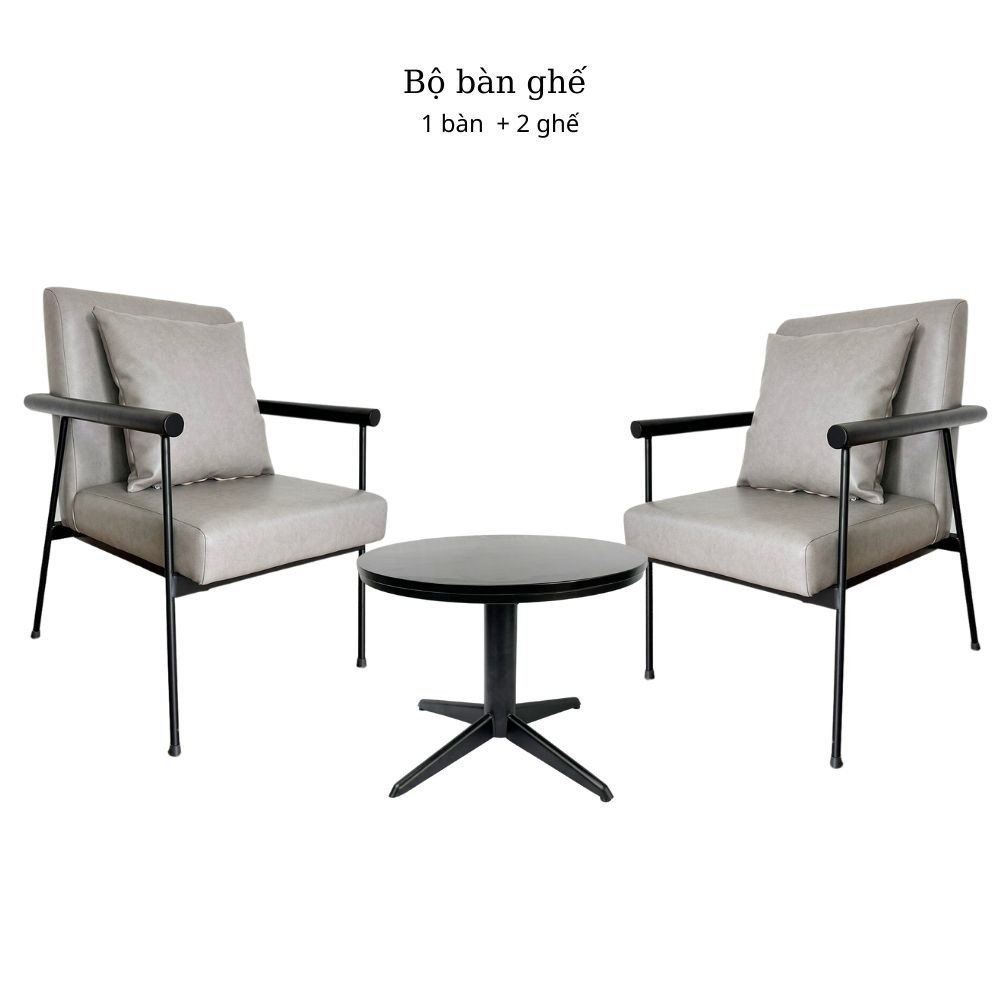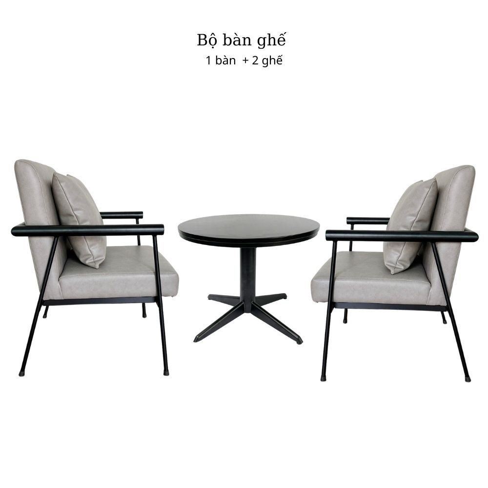 Bộ bàn ghế cafe, bàn ghế thư giãn CBSF68026 là sự kết hợp của 2 ghế nệm khung sắt và bàn sofa tròn mặt gỗ chân sắt. Bộ bàn ghế CBSF68026 với kiểu dáng trang nhã, tinh tế dễ dàng sử dụng trong nhiều không gian khác nhau từ nhà ở đến quán cafe, nhà hàng... Combo sản phẩm bàn ghế giúp bạn tiết kiệm hơn khi mua từng sản phẩm riêng lẻ rất nhiều.