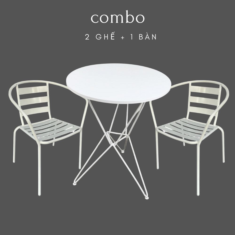 Bộ bàn cafe tròn và 2 ghế sắt có tay vịn