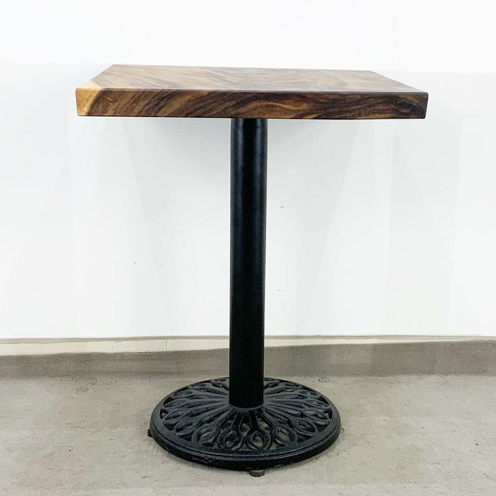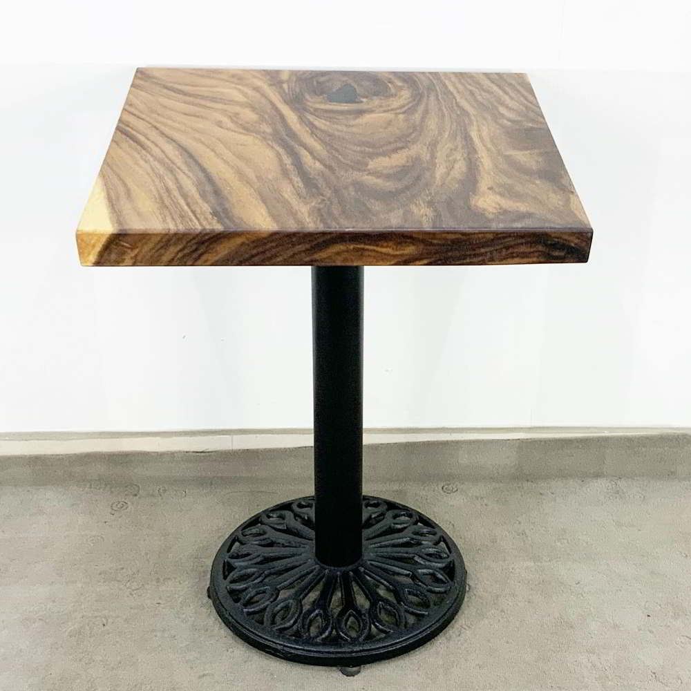 Bàn cafe vuông gỗ me tây dày 5 cm chân gang đúc