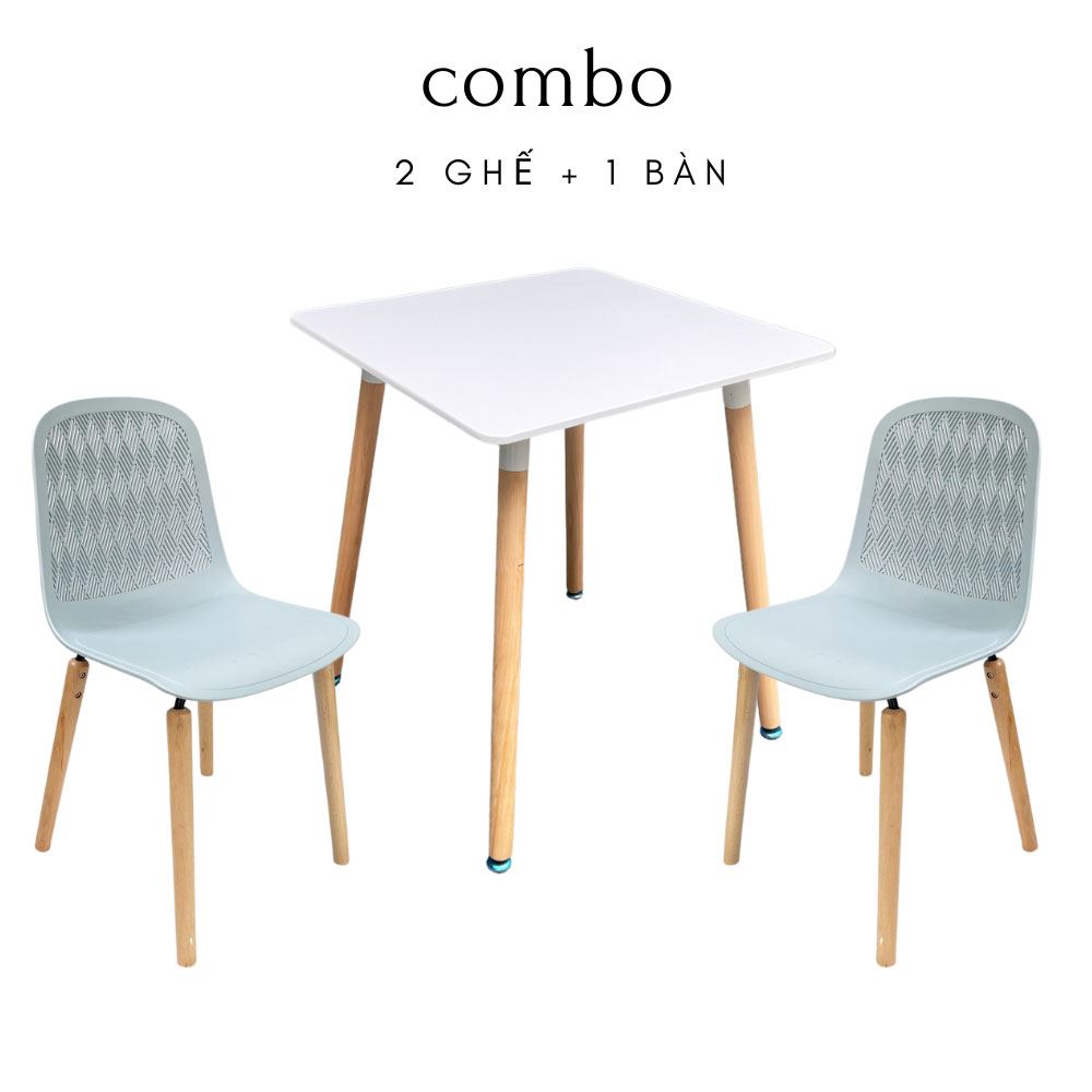 Bộ bàn ghế cafe mặt vuông chân gỗ CBCF142 bộ sản phẩm gồm 2 Ghế cafe lưng nhựa chân gỗ ST3003C và 1 bàn Bàn cafe Eames vuông 60cm chân gỗ ST1542A đều là thiết kế Eames nổi tiếng được ưa chuộng. Bộ bàn ghế thích hợp cho không gian quán cafe hoặc bàn ăn trong các căn phòng trọ, căn hộ mini. Với chân gỗ kết hợp khung sắt rất chắc chắn và bền bỉ.