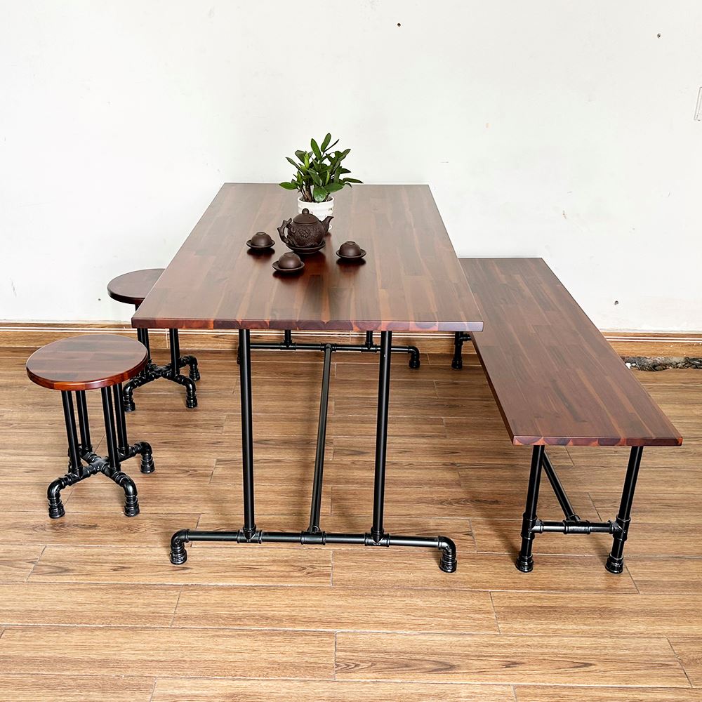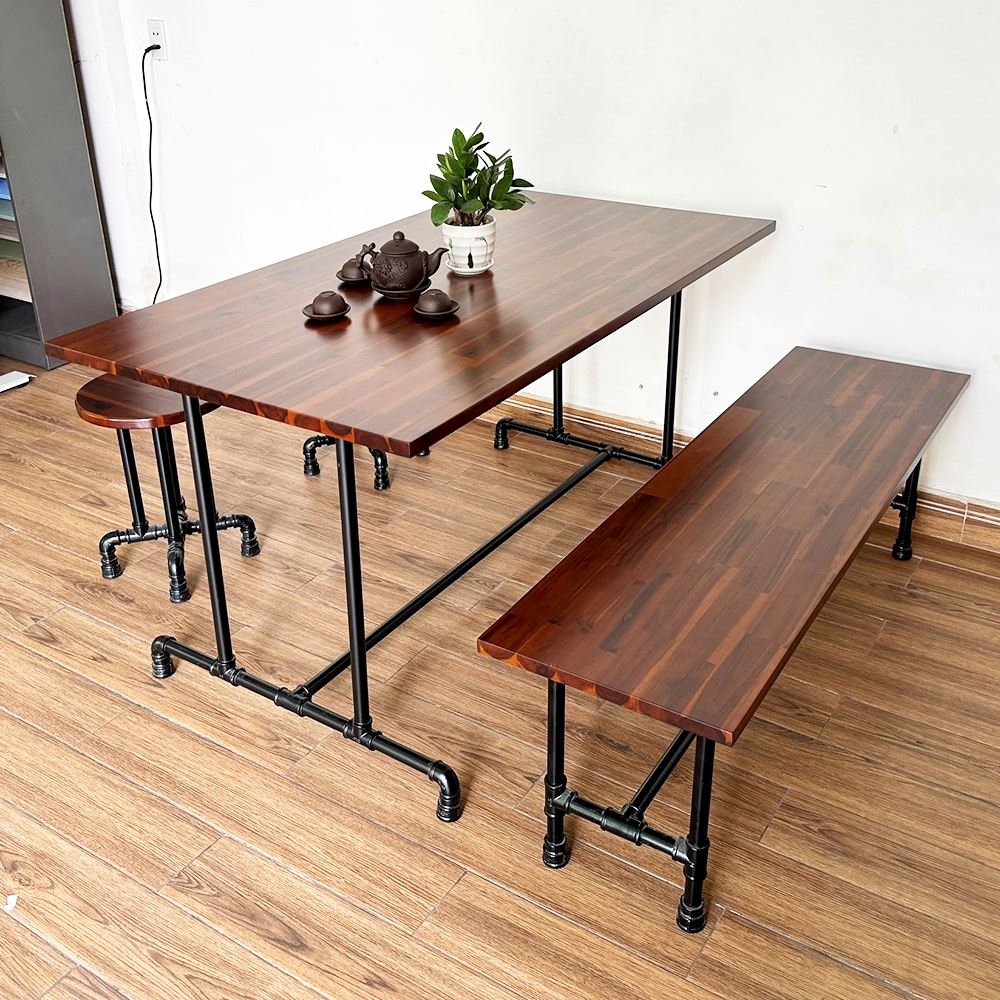 Bộ bàn ghế chân ống nước mặt gỗ Tràm CBBA109 bộ bàn ăn gồm ghế băng và 2 ghế ngồi phong cách của nội thất ống nước rất độc đáo, mặt bàn gỗ tràm màu cánh gián sang trọng, sản phẩm có thể dùng trong nhà hoặc ngoài trời có mái che sẽ rất phù hợp.