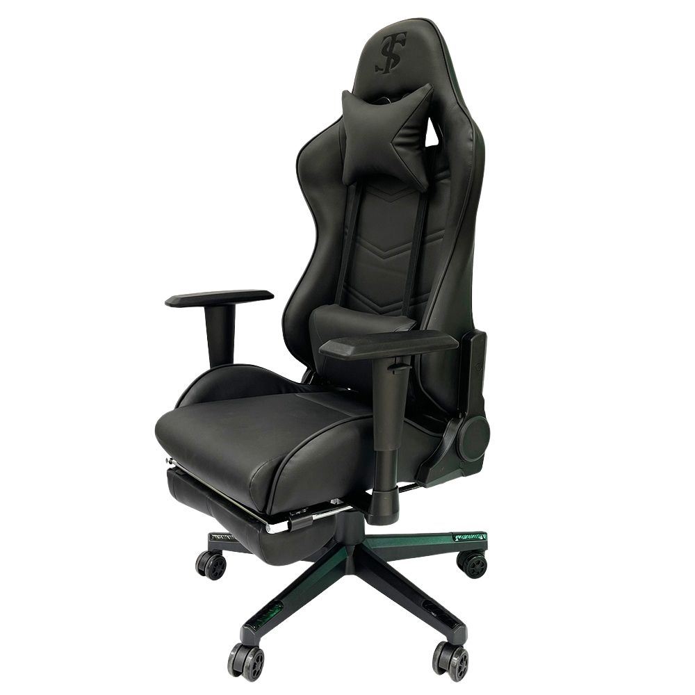 | 2 | Ghế Gaming TS ngả lưng có gác chân màu đen MA010 | 1. Tựa Đầu : Tựa đầu cao có gối 2. Tựa lưng ghế : Tựa lưng ghế khung bằng nhựa bọc da simili cao cấp 3. Hỗ trợ cột sống : Hỗ trợ cột sống cố định với gối và chế độ ngả lưng 4. Nệm : Dày bọc Simili cao cấp màu đen mạnh mẽ và cá tính. 5. Tay ghế : Tay ghế điều chỉnh lên xuống, sang trái sang phải 6. Bộ điều khiển : Ghế trang bị tính năng nâng hạ chiều cao và chốt khoá ngả lưng nhiều vị trí cao cấp 7. Gác chân giúp bạn tận hưởng thời gian nghỉ ngơi thoải mái nhất 8. Chân ghế : Chân ghế bằng nhựa cao cấp, đường kính vòng chân lớn nên rất vững chãi. 9. Bánh xe: Bánh xe linh hoạt, nhẹ nhàng và hạn chế tiếng ồn khi di chuyển. Bảo hành: 12 tháng |  | 1 |