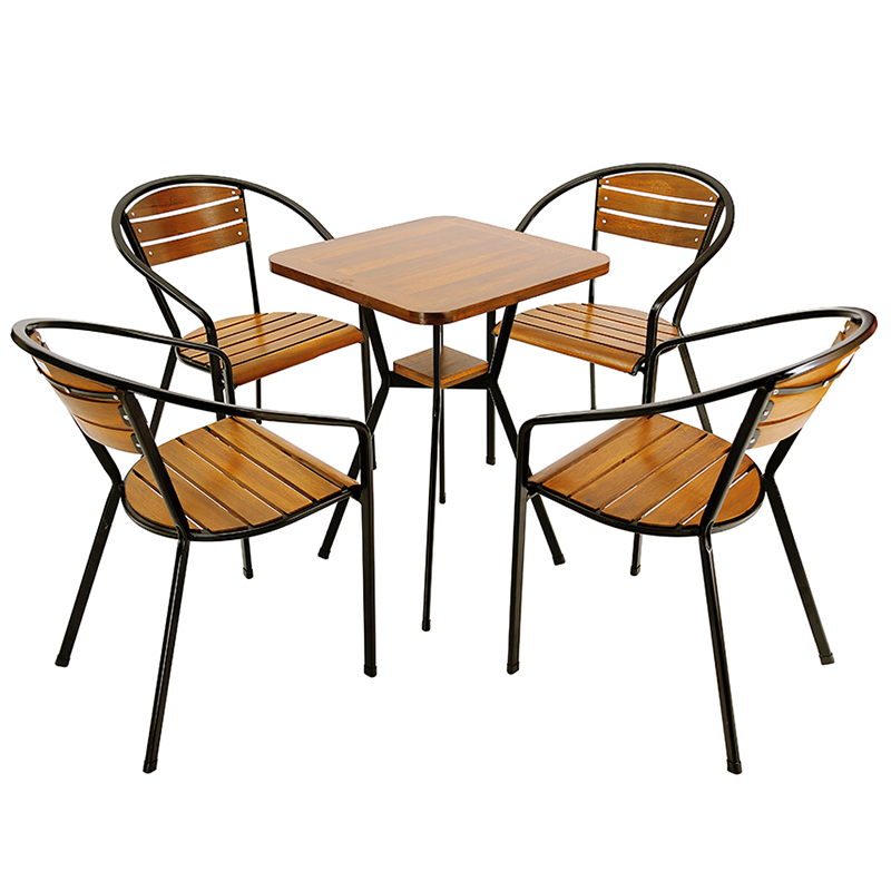 Bộ bàn ghế ngoài trời 4 người Moon CBCF155 bao gồm 1 bàn vuông kích thước 55cm và 4 ghế tựa lưng gỗ khung sắt. Bộ bàn ghế ngoài trời 4 người Moon CBCF155 với ưu điểm nhỏ gọn, có thể xếp chồng dễ dàng di dời, bảo quản và màu sắc đẹp mắt có thể sử dụng cả trong và ngoài trời được ưa chuộng cho bàn ghế nhà hàng, khách sạn, bàn ghế cafe, hay dùng trong gia đình cho bàn ghế ban công, bàn ghế sân vườn.