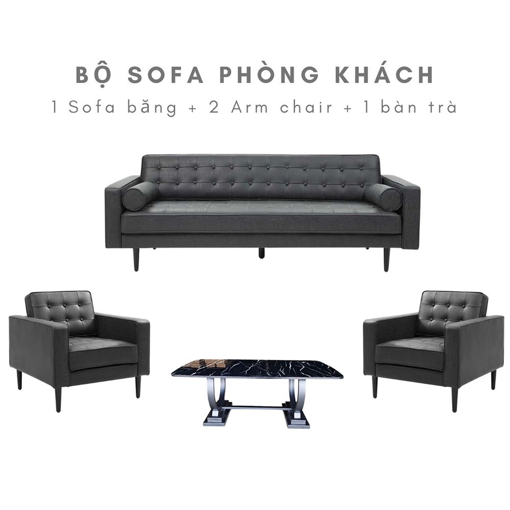 Bộ bàn ghế sofa simili màu đen và bàn sofa mặt đá CBSF68008 được kết hợp từ những mẫu bàn ghế sofa bán lẻ tại HomeOffice tạo thành bộ sản phẩm bàn ghế sofa giúp quý khách hàng dễ dàng sắp xếp sao cho phù hợp với phong cách của không gian sử dụng. Đặc biệt tại HomeOffice bạn có thể thay đổi màu sắc ghế sofa theo sở thích của mình với bảng màu sắc đa dạng. Bên cạnh đó, các combo sản phẩm cũng giúp bạn tiết kiệm hơn rất nhiều khi mua lẻ từng sản phẩm. Dưới đây là bảng chi tiết số lượng, chất liệu của từng sản phẩm, bạn có thể tham khảo trên website hay liên hệ trực tiếp với chúng tôi nếu có thắc mắc nhé :