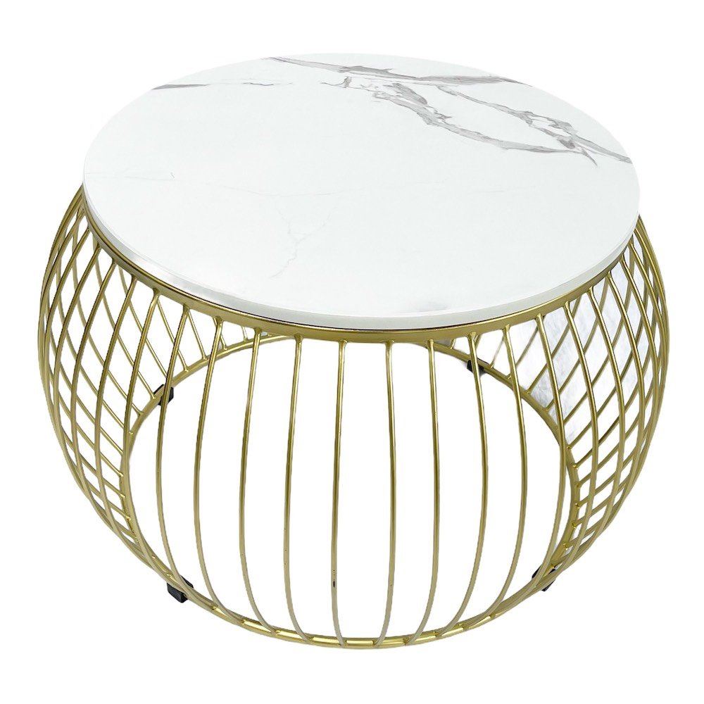 Bàn sofa tròn mặt đá trắng khung màu vàng đồng sang trọng