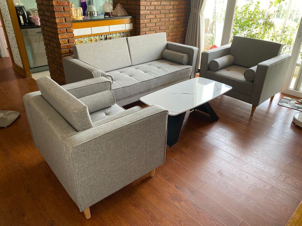 Bộ bàn ghế sofa màu xám nhạt sofa mặt đá đen sang trọng