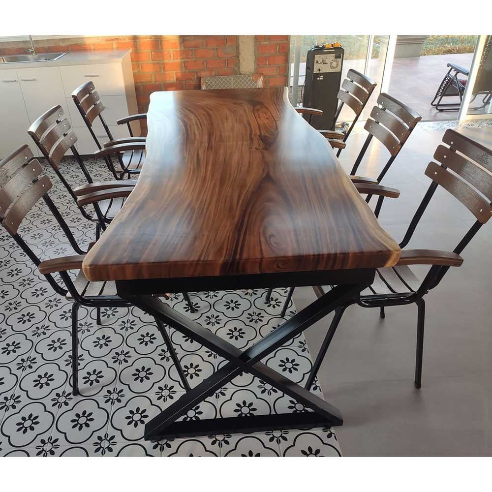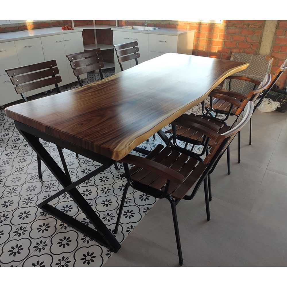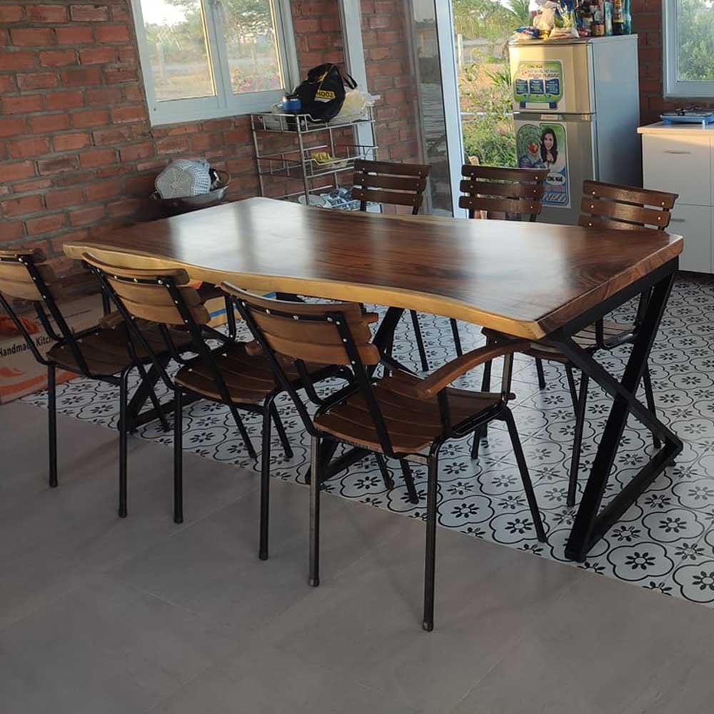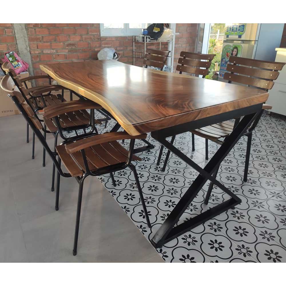 - 1 Bàn Gỗ Me Tây Nguyên Tấm kích thước 200x80cm dày 5cm kết hợp khung chân sắt chữ X sơn tĩnh điện
