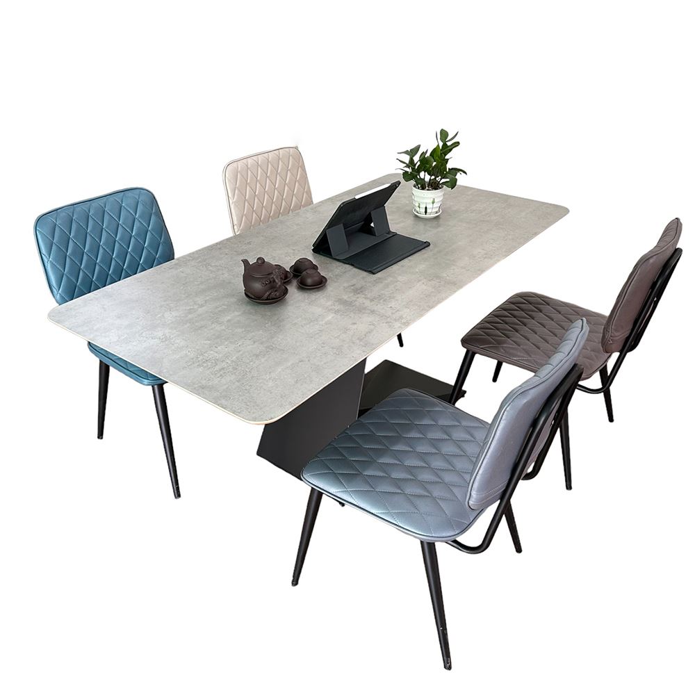 Bộ Bàn Ăn Gỗ Plywood và 4 Ghế Nệm Nhiều Màu CBBA085 là bộ sản phẩm kích thước nhỏ phù hợp với các không gian căn hộ nhỏ hay có thể dùng trong các nhà hàng, quán ăn với sự kết hợp của bàn ăn 1m4x80cm mặt gỗ Plywood giả màu bê tông và 4 ghế ăn chân sắt nệm simili nhiều màu rất vừa vặn và đẹp mắt. Nếu quý khách đang tìm kiếm bộ bàn ghế ăn độc đáo và sang trọng thì bộ bàn ghế ăn CBBA085 là lựa chọn không thể bỏ qua.