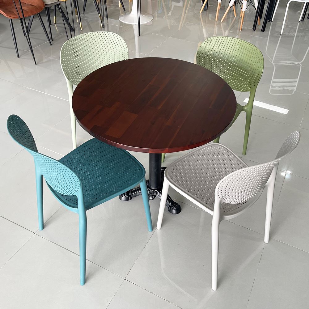 Bộ Bàn Ghế 4 Người CBCF163 được kết hợp từ bàn tròn 80cm gỗ tràm chân gang 3 chĩa và 4 ghế nhựa cao cấp nhiều màu đẹp mắt. Kiểu dáng đơn giản, kích thước nhỏ gọn phù hợp với nhiều không gian từ bàn ghế cafe đến bàn ghế ăn nhỏ gọn cho gia đình. Mẫu bàn tròn được nhiều người dùng ưa chuộng vì khả năng tiết kiệm diện tích bày trí mang đến không gian thoải mái, thoáng đãng.