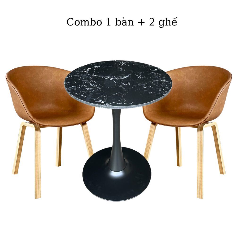 Bộ bàn tròn mặt đá và 2 ghế Hay - CBCF181 bộ sản phẩm 1 bàn và 2 ghế cao cấp dùng cho quán cafe, nhà hàng hay không gian tiếp khách với 2 chiếc ghế Hay bọc da cao cấp, bàn tròn 60cm chân sắt Tulip mặt đá đen sang trọng kích thước tròn 60cm.
