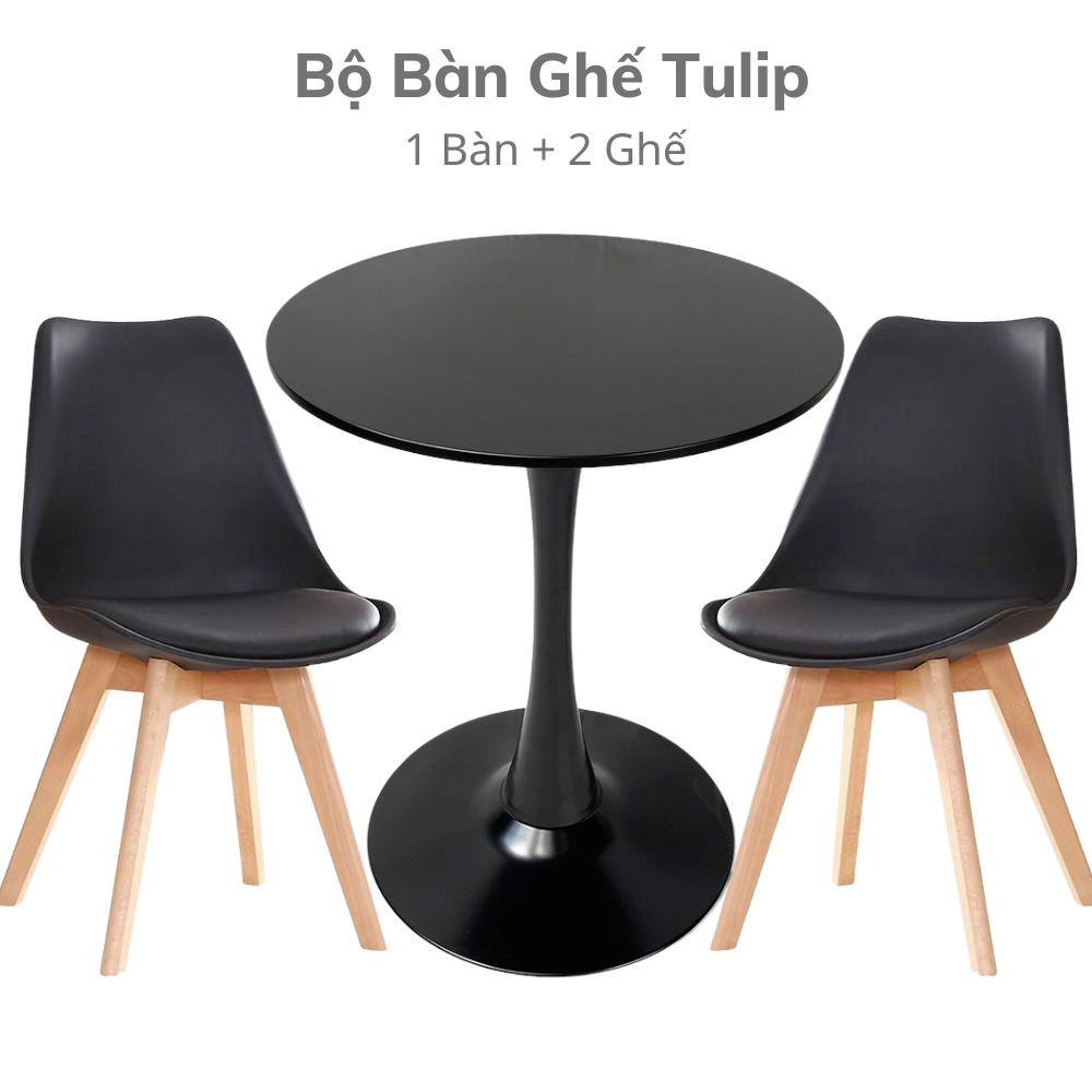Bộ Bàn Bàn Ghế Cafe Tulip CBCF144 là bộ sản phẩm bao gồm 1 bàn Tuplip tròn 60cm và 2 ghế Eames nệm đen chân gỗ, kiểu dáng tối giản tinh tế có thể sử dụng trong nhiều không gian và mục đích khác nhau từ gia đình nhà ở đến quán cafe, nhà hàng,... hay khu vực tiếp khách văn phòng, công ty đều phù hợp.