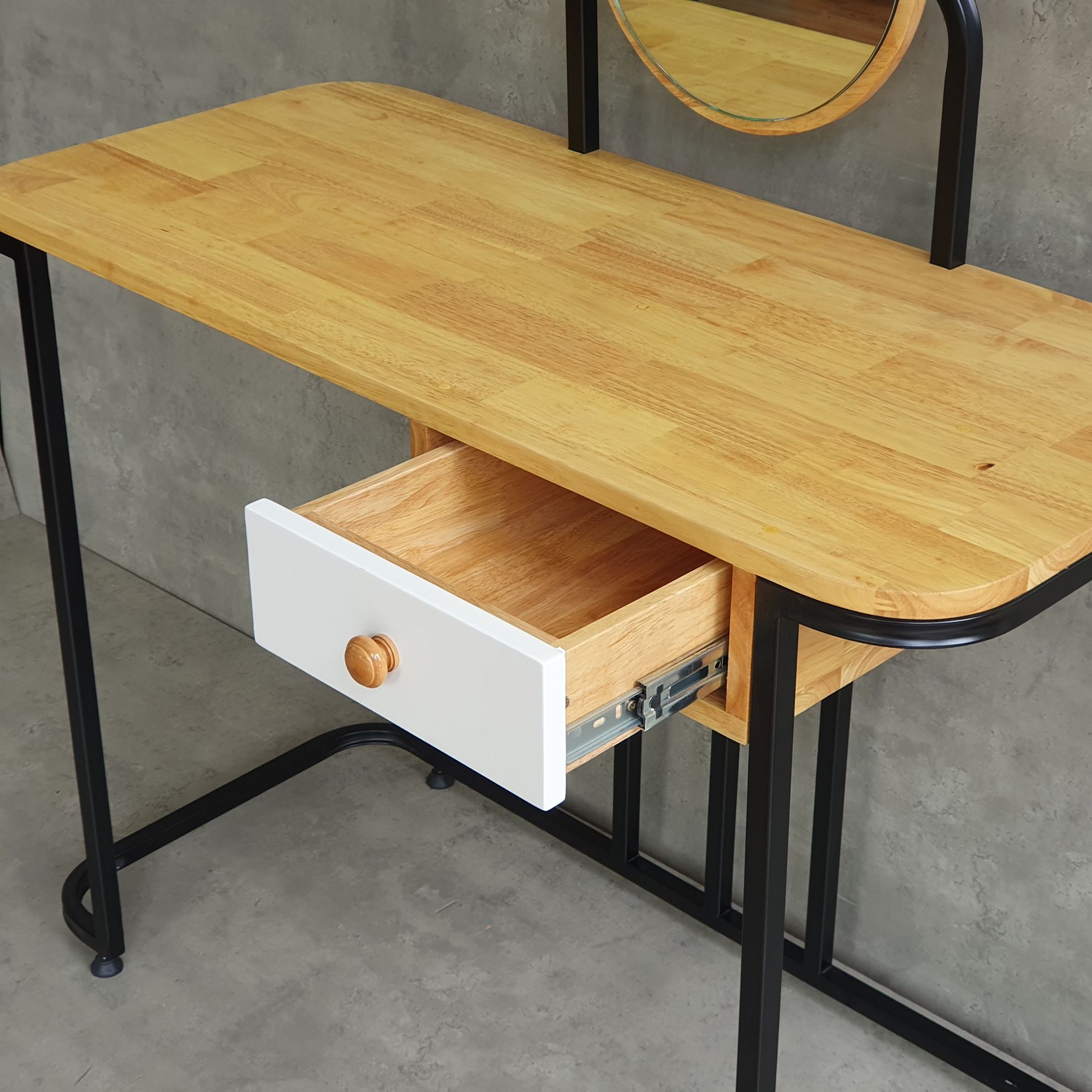 Bàn trang điểm BTD68062 sử chất liệu chính là gỗ cao su ghép, đạt tiêu chuẩn xuất khẩu AA. Bề mặt gỗ đã được xử lý bằng sơn PU chống thấm. Ngoài ra, bạn có thể lựa chọn 5 màu khác tùy thích, phù hợp với nhiều không gian và phong cách mà cá nhân đang hướng tới. Khung chân sắt được hoàn thiện cẩn thận, mang nét thanh mảnh nhưng vẫn đảm bảo sự chắc chắn và ổn định. Bề mặt sắt được phủ lớp sơn tĩnh điên cao cấp chống rỉ sét, chống trầy, đảm bảo bộ bền bỉ theo thời gian.