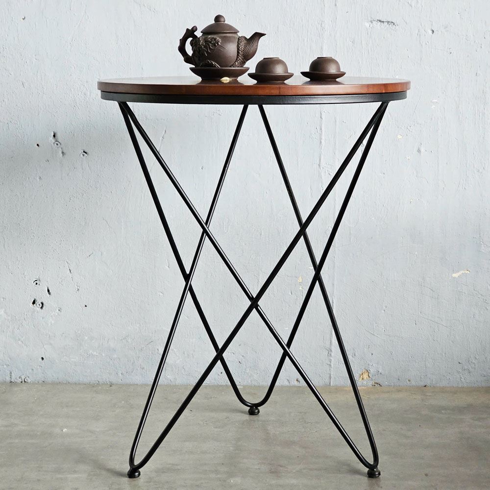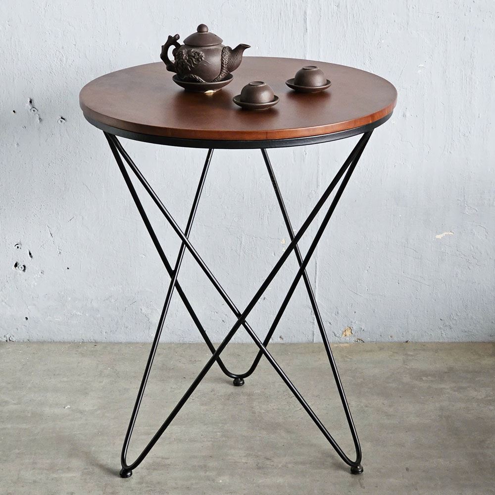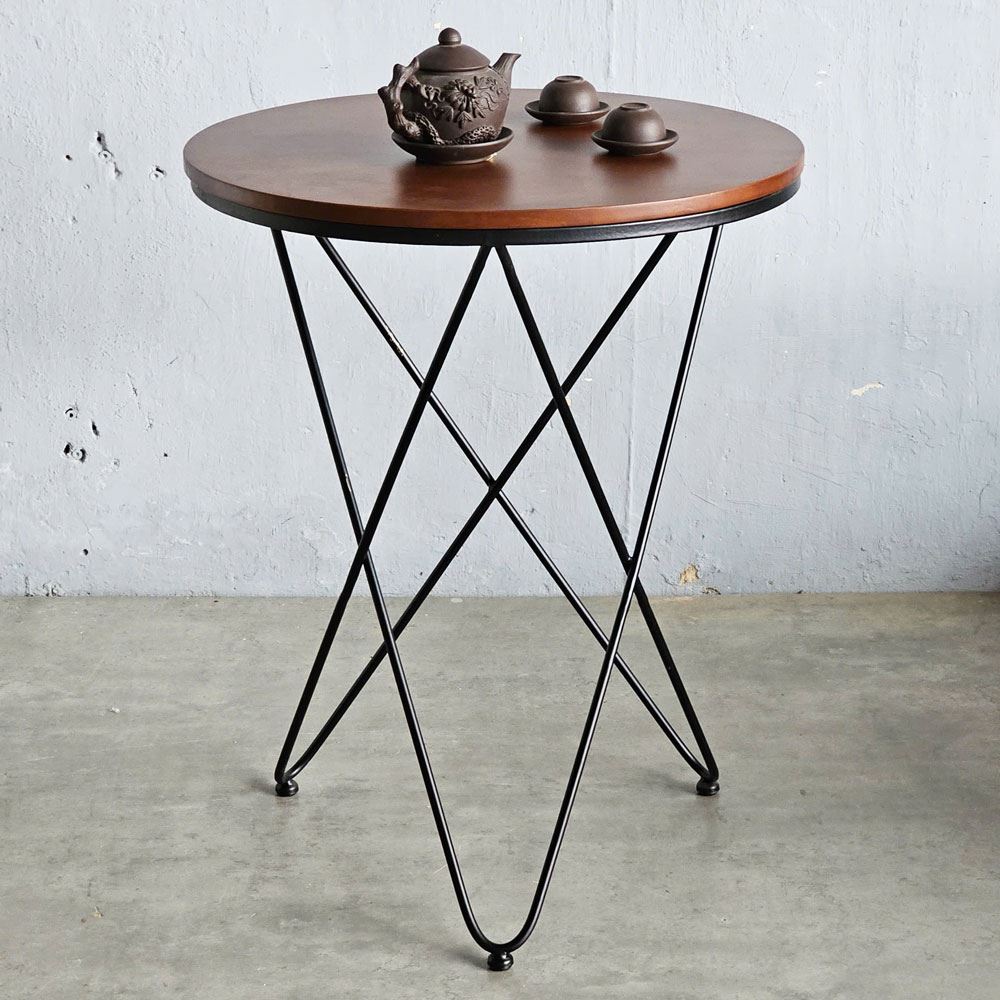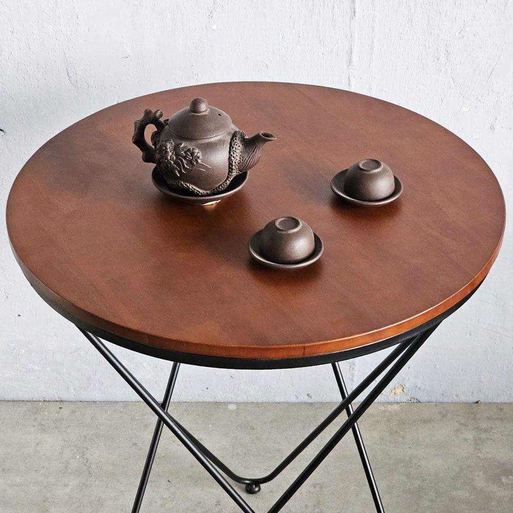Bàn cafe tròn 60cm gỗ CAO SU chân sắt V xéo nhiều màu